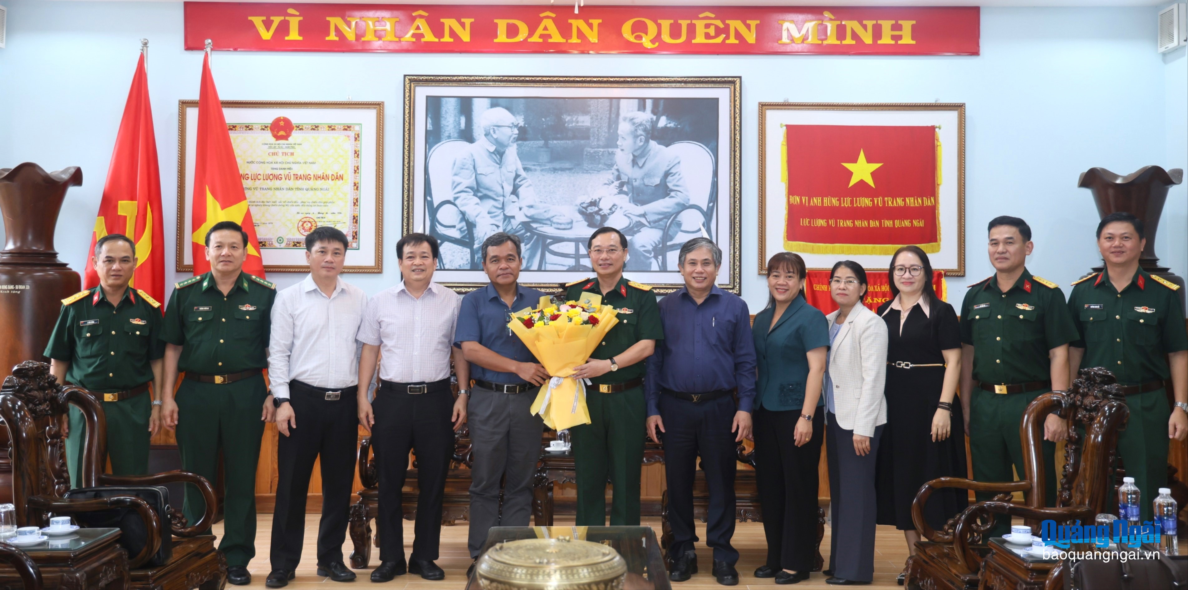 Bộ CHQS tỉnh tặng hoa chúc mừng Ủy viên Trung ương Đảng, Bí thư Tỉnh ủy, Bí thư Đảng ủy Quân sự tỉnh Hồ Văn Niên.