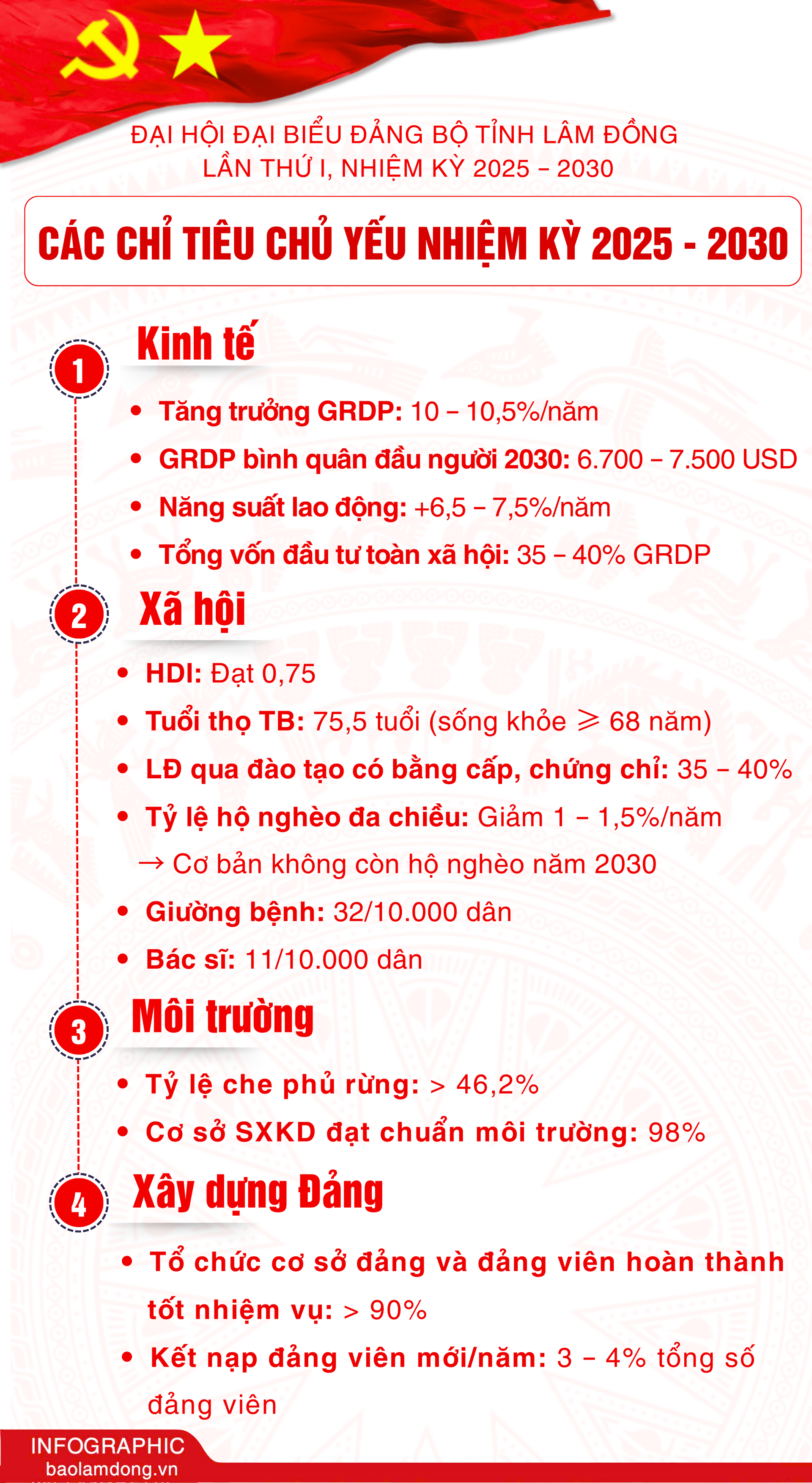 Từ ngày 09 đến 11/10, Đại hội đại biểu Đảng bộ tỉnh Lâm Đồng lần thứ I, nhiệm kỳ 2025 - 2030 diễn ra trọng thể, dân chủ, đoàn kết và thành công tốt đẹp. Đại hội đã thông qua Nghị quyết với mục tiêu, định hướng phát triển rõ ràng, phù hợp với yêu cầu của tỉnh sau sắp xếp; đồng thời bầu Ban Chấp hành Đảng bộ tỉnh khóa mới, đảm bảo tiêu chuẩn, cơ cấu hợp lý, kết hợp giữa kinh nghiệm và đổi mới.