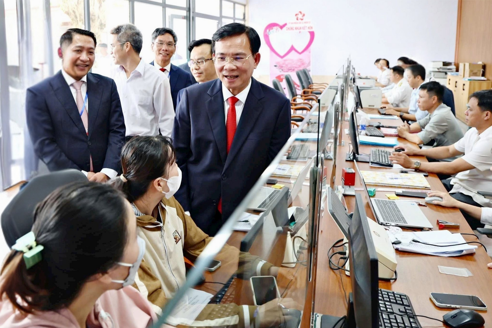 Phó Bí thư Tỉnh ủy, Chủ tịch UBND tỉnh Lâm Đồng Hồ Văn Mười gặp gỡ, trò chuyện với người dân đến làm thủ tục tại Trung tâm Phục vụ hành chính công phường Nam Gia Nghĩa