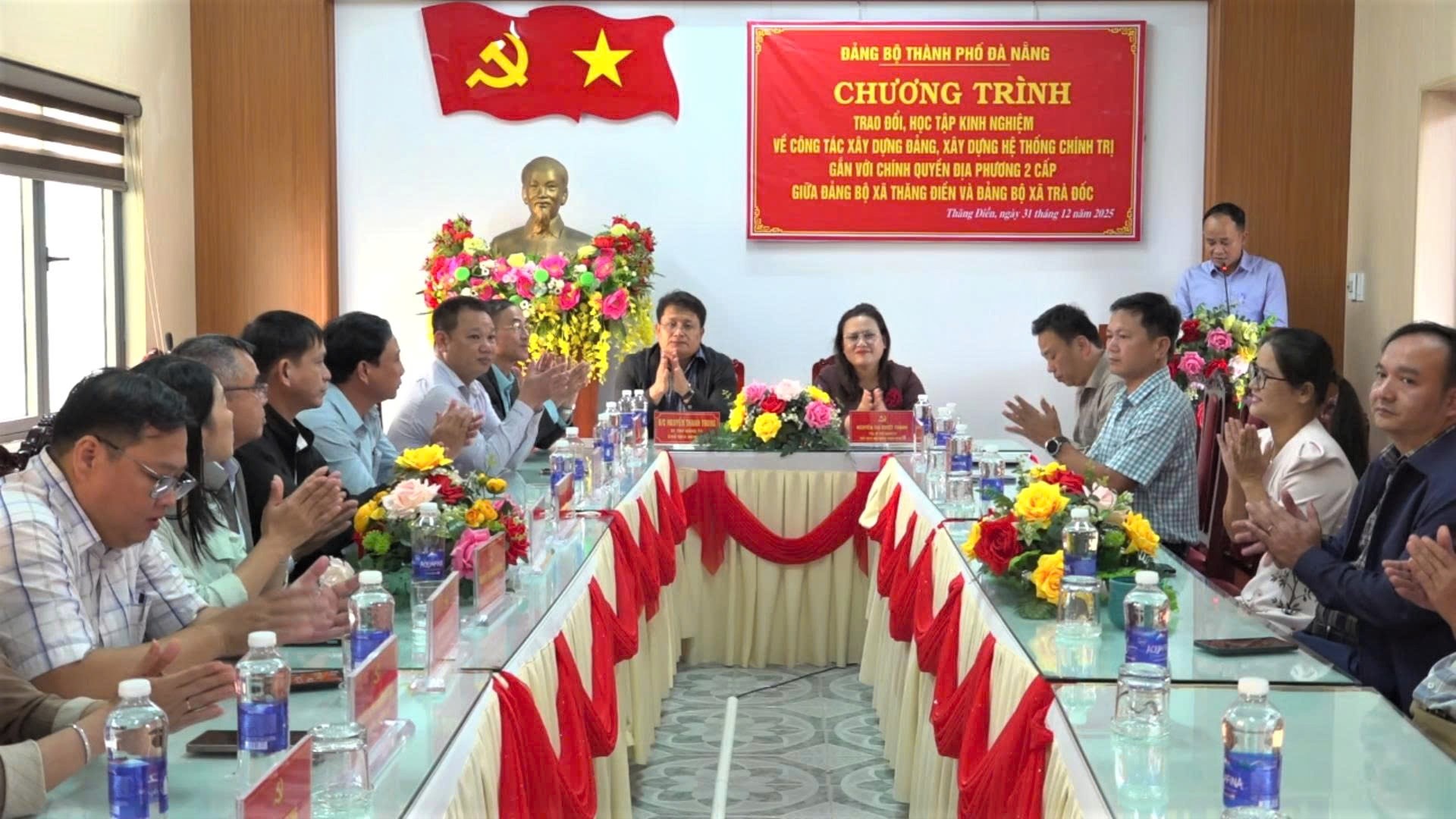 Đảng ủy 2 xã Thăng Điền và Trà Đốc trao đổi, học tập kinh nghiệm về xây dựng Đảng, chính quyền. Ảnh: GIANG BIÊN