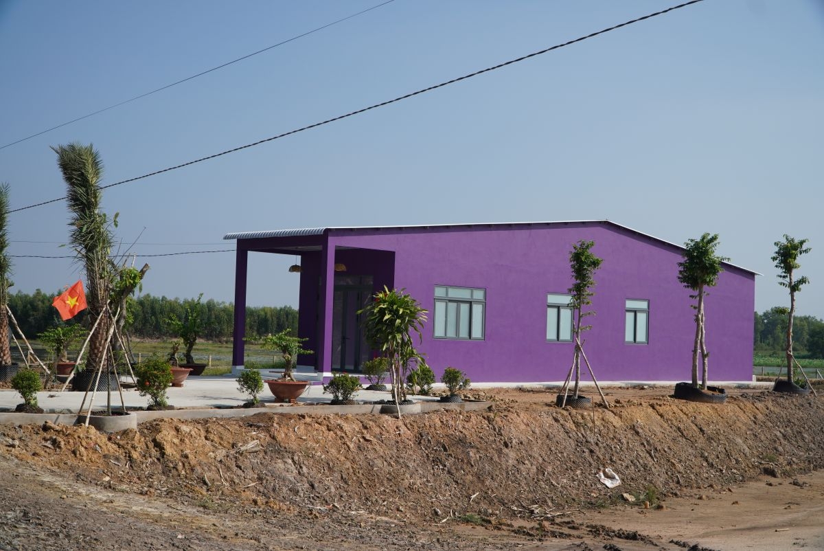 Căn nhà màu tím nổi bật trong không gian xanh mát ở vùng biên (ảnh: L.V)