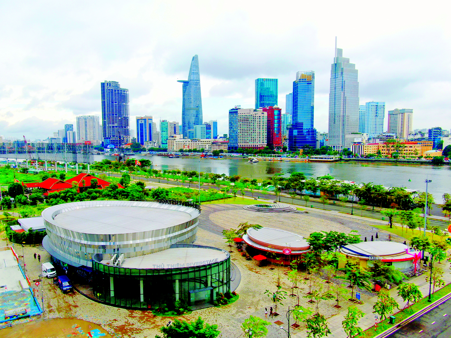 Công viên bờ sông Thủ Thiêm nhìn về trung tâm TPHCM. Ảnh: HOÀNG HÙNG
