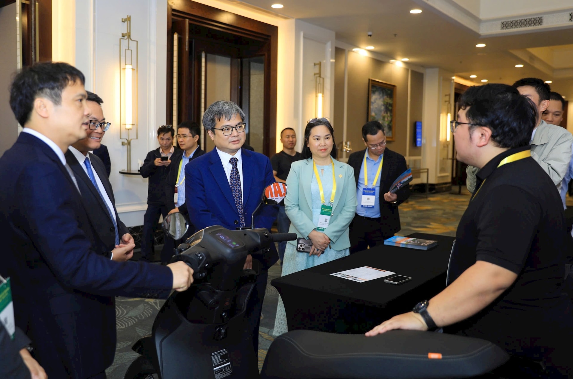 Các đại biểu tham quan gian trưng bày sản phẩm của các doanh nghiệp. Ảnh: Xuân Hải