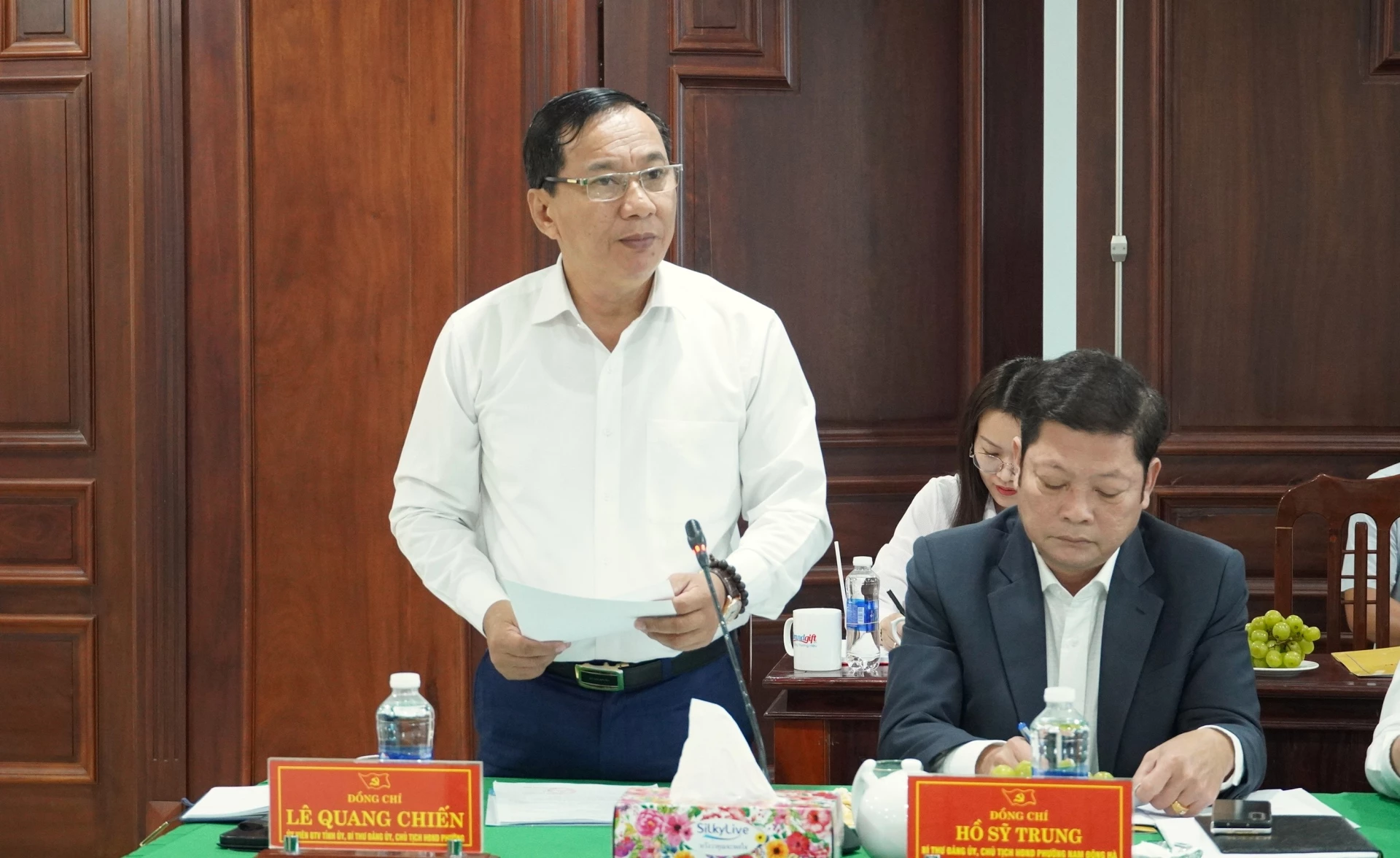 Đồng chí Lê Quang Chiến, Bí thư Đảng ủy phường Đông Hà phát biểu tại buổi làm việc - Ảnh: Q.V