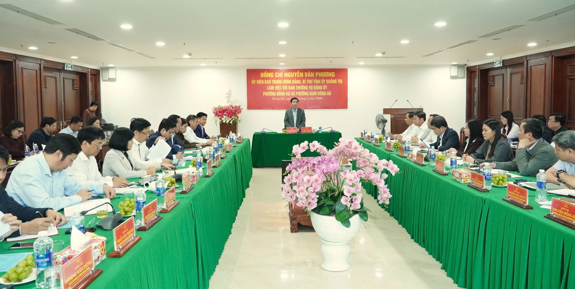 Phát biểu kết luận tại buổi làm việc, đồng chí Nguyễn Văn Phương, Bí thư Tỉnh ủy ghi nhận, đánh giá cao nỗ lực của cấp ủy, chính quyền địa phương phường Đông Hà và Nam Đông Hà trong thời gian qua, đặc biệt từ sau khi thực hiện mô hình chính địa phương hai cấp.