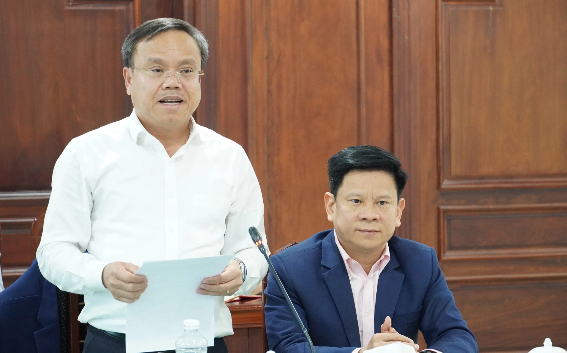 Đồng chí Lê Đức Tiến, Phó Chủ tịch UBND tỉnh phát biểu tại buổi làm việc - Ảnh: Q.V
