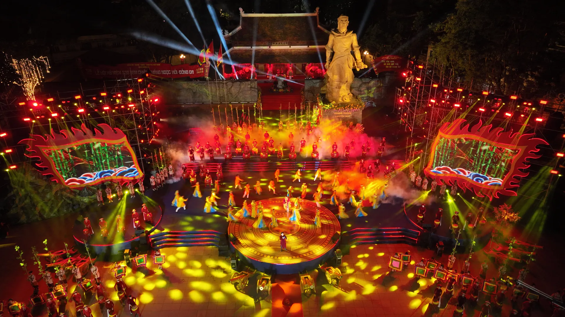 Chương trình nghệ thuật ứng dụng công nghệ 3D mapping tại Lễ hội Gò Đống Đa 2025. Ảnh: Phạm Hùng