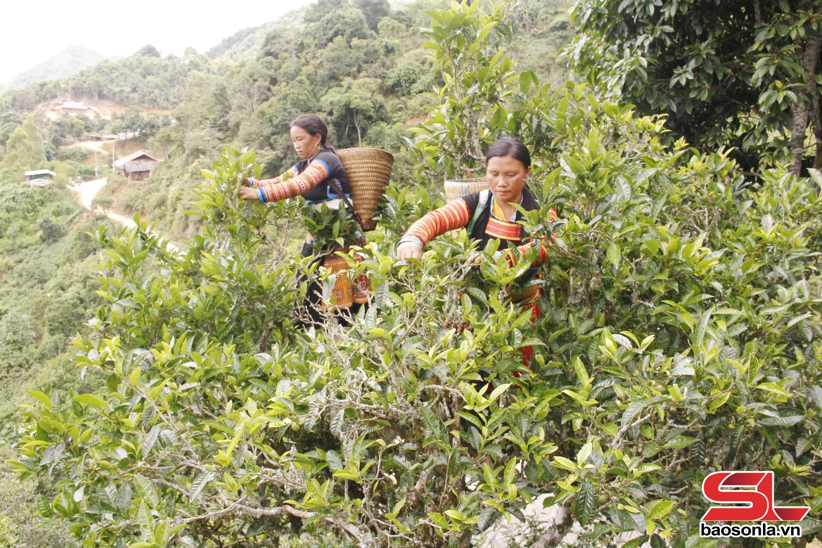 Thu hái chè cổ thụ tại bản Bẹ, xã Tà Xùa.