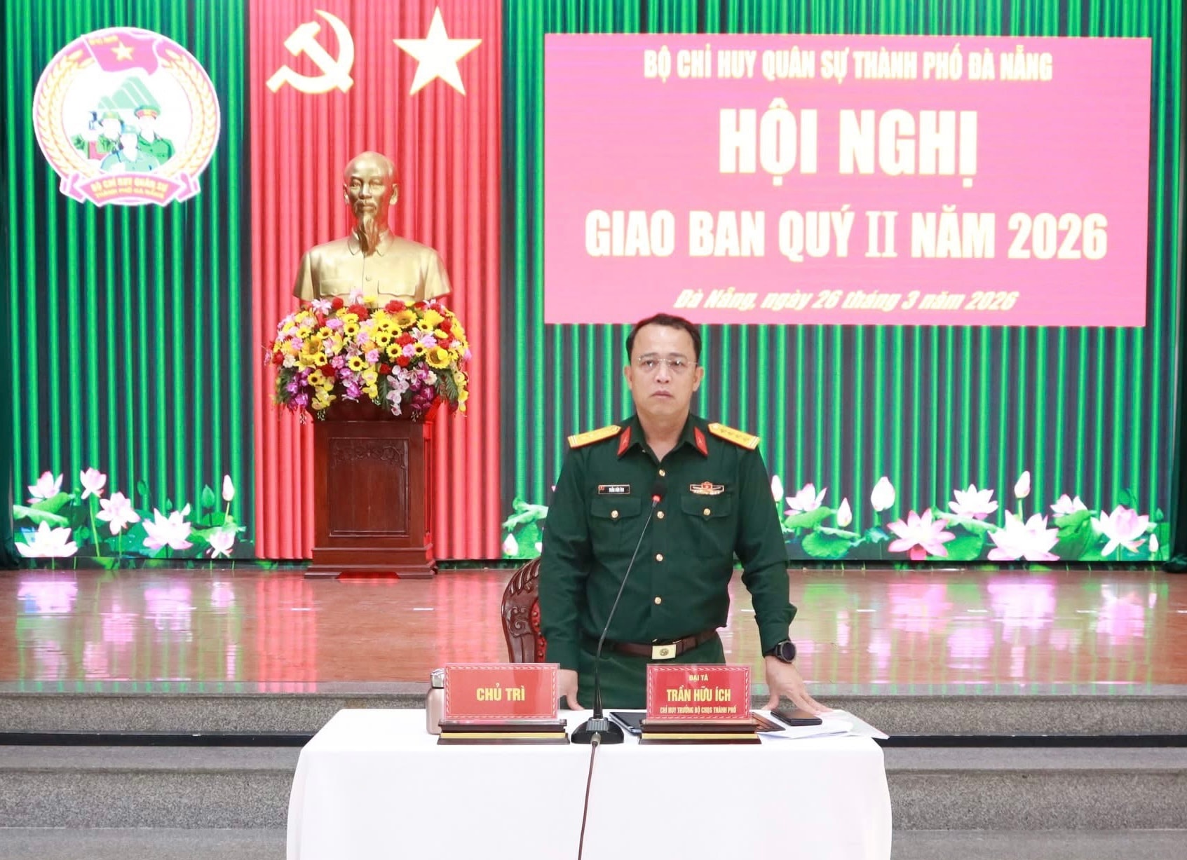 Đại tá Trần Hữu Ích chủ trì hội nghị. Ảnh: MINH THY