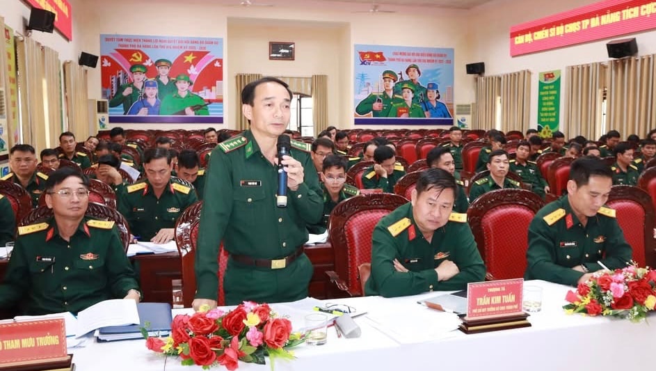 Đại diện Ban Chỉ huy Bộ đội Biên phòng thành phố tham gia ý kiến. Ảnh: MINH THY