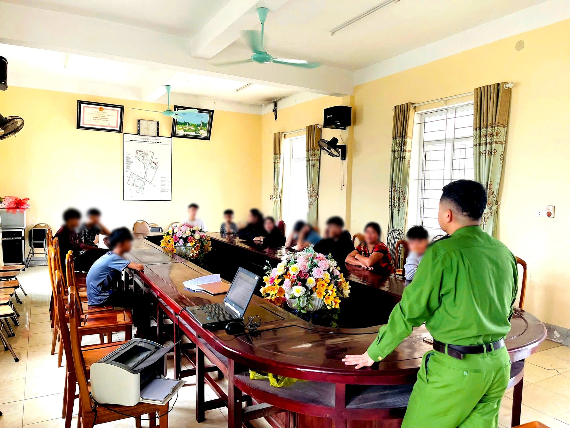Công an xã Trường Lưu phối hợp chặt chẽ với các gia đình để theo dõi, giáo dục, kèm cặp con cái.