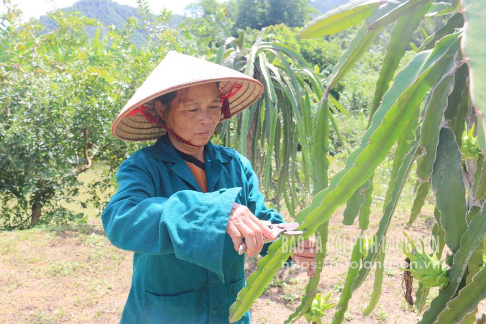 Người dân xã Điềm He chăm sóc cây thanh long