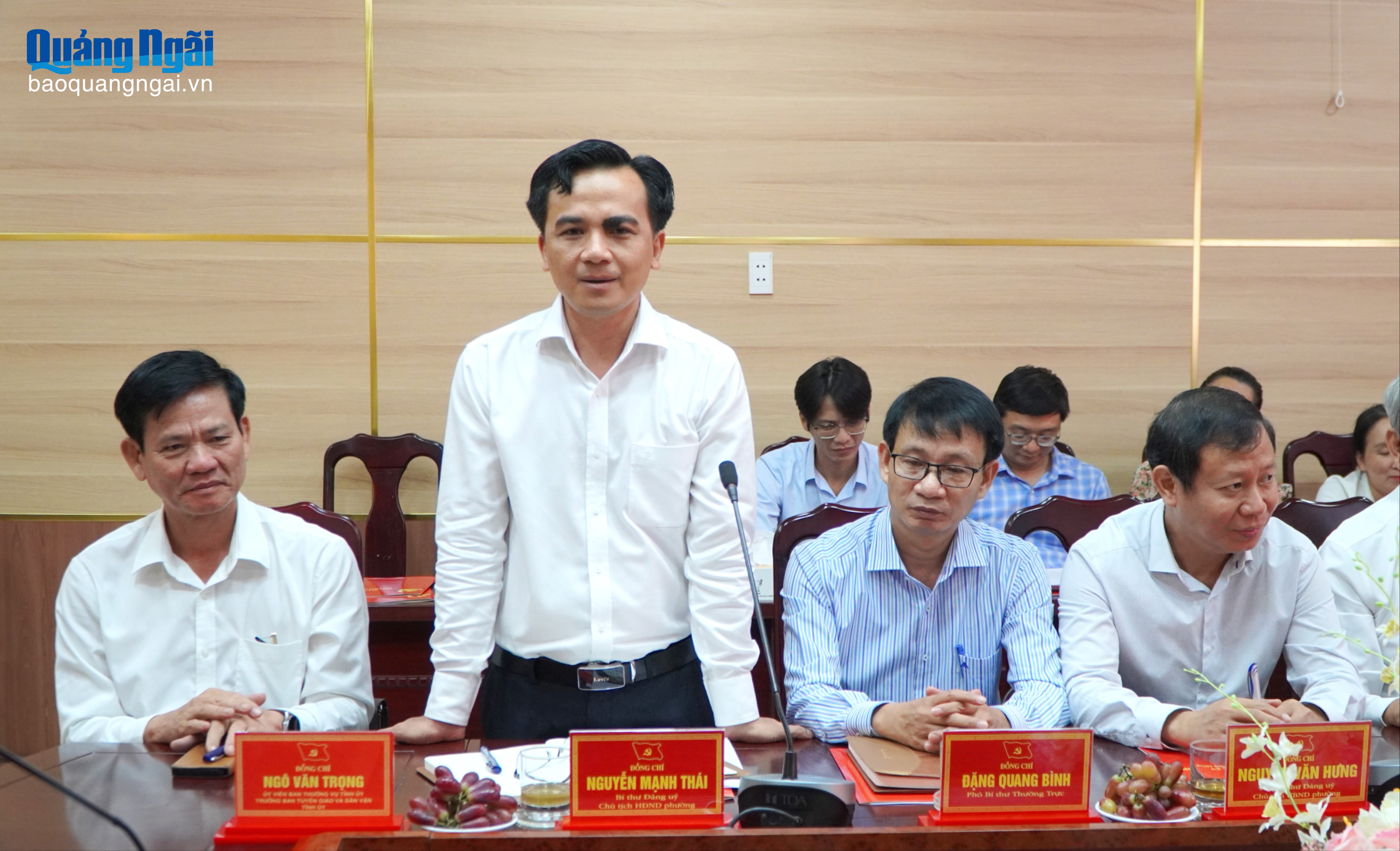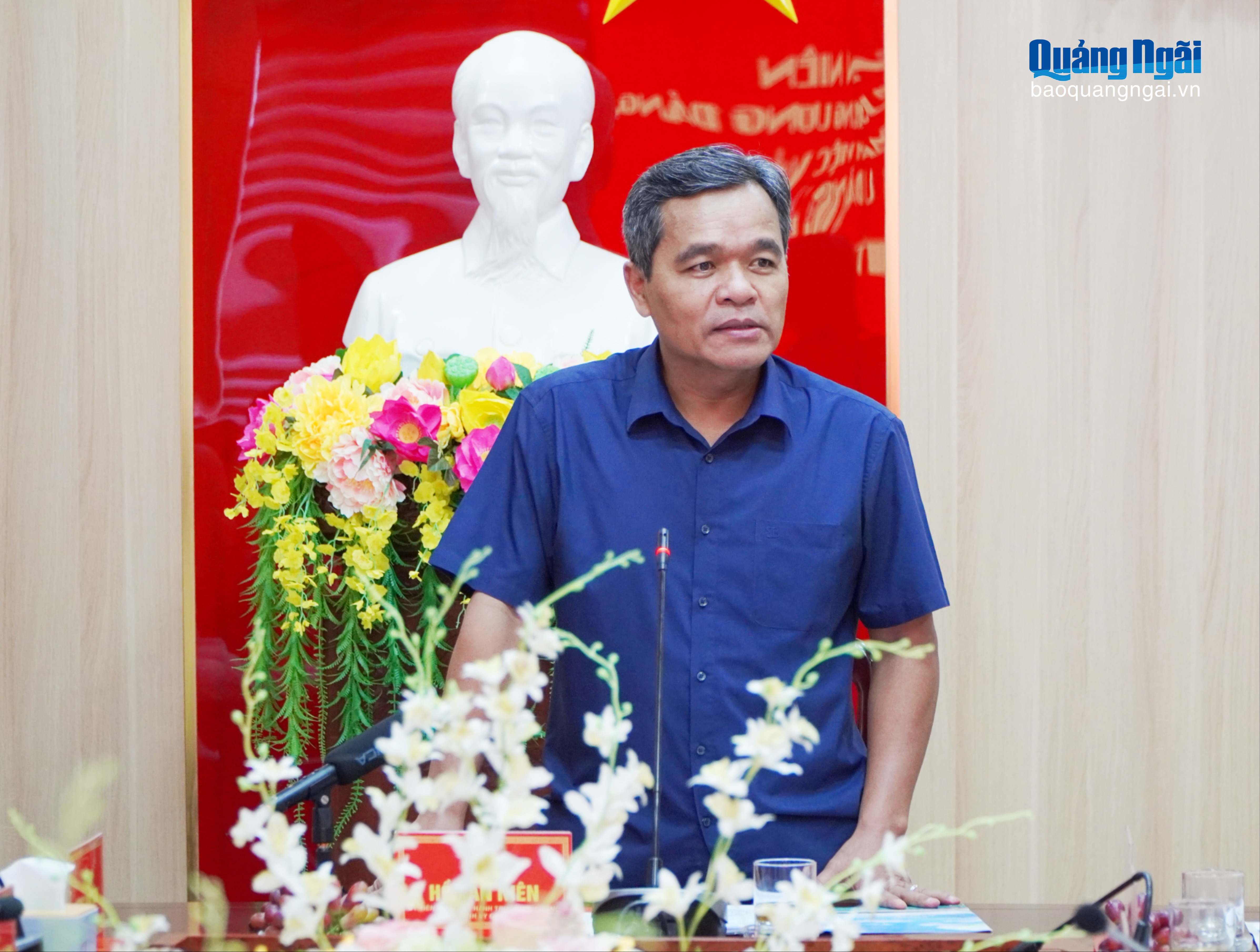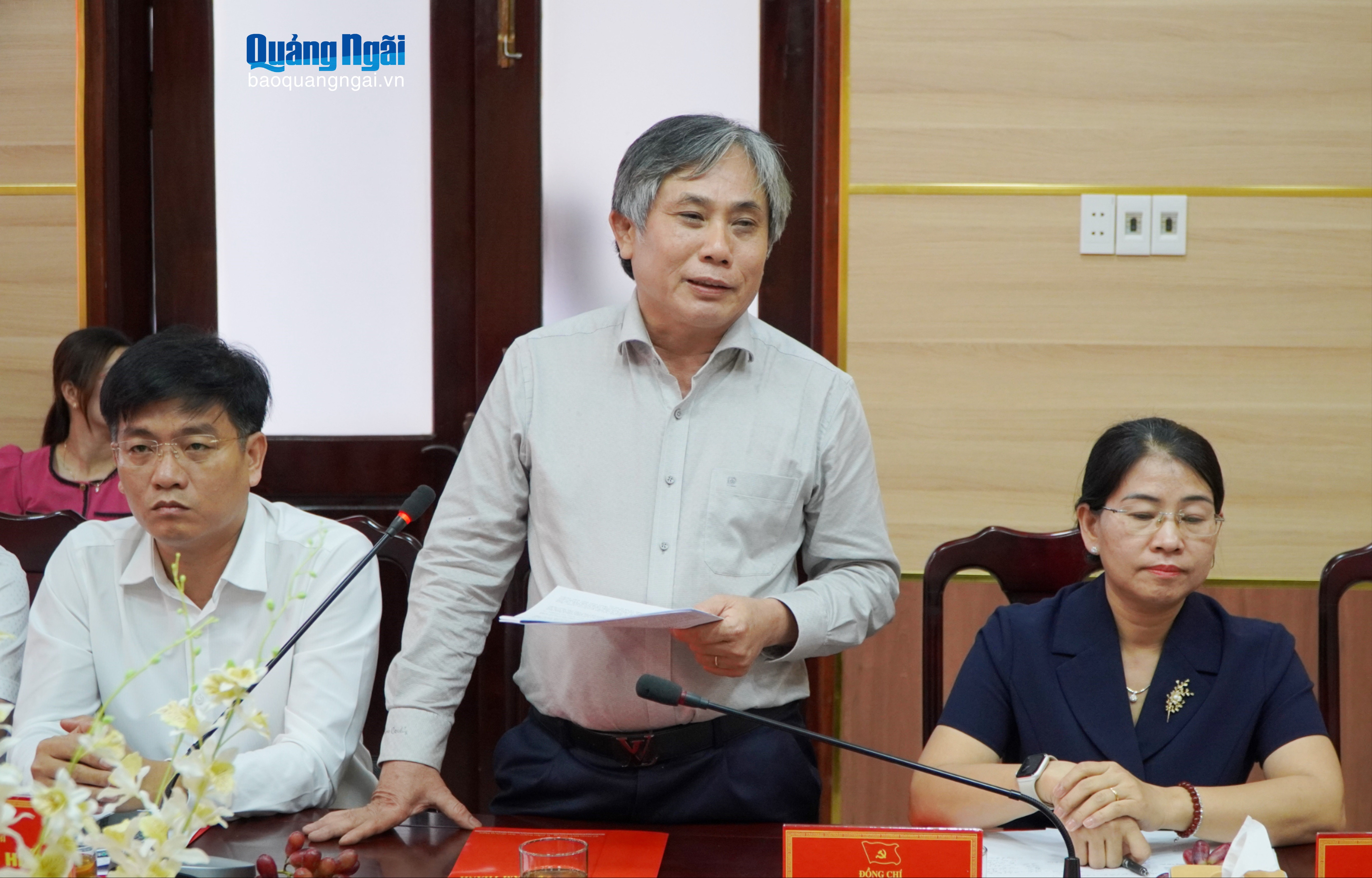 Tham dự buổi làm việc có Ủy viên Ban Thường vụ Tỉnh ủy, Trưởng ban Tổ chức Tỉnh ủy Lữ Ngọc Bình; Ủy viên Ban Thường vụ Tỉnh ủy, Trưởng ban Tuyên giáo và Dân vận Tỉnh ủy Ngô Văn Trọng; Ủy viên Ban Thường vụ Tỉnh ủy, Trưởng ban Nội chính Tỉnh ủy Trương Thị Linh; Ủy viên Ban Thường vụ Tỉnh ủy, Trưởng ban Quản lý KKT Dung Quất và các KCN Quảng Ngãi Lương Kim Sơn; Phó Chủ tịch UBND tỉnh Đỗ Tâm Hiển; Giám đốc các sở: Tài chính, Công thương, Xây dựng, Nông nghiệp và Môi trường; Chánh Văn phòng Tỉnh ủy; đại diện lãnh đạo sở, ngành liên quan.