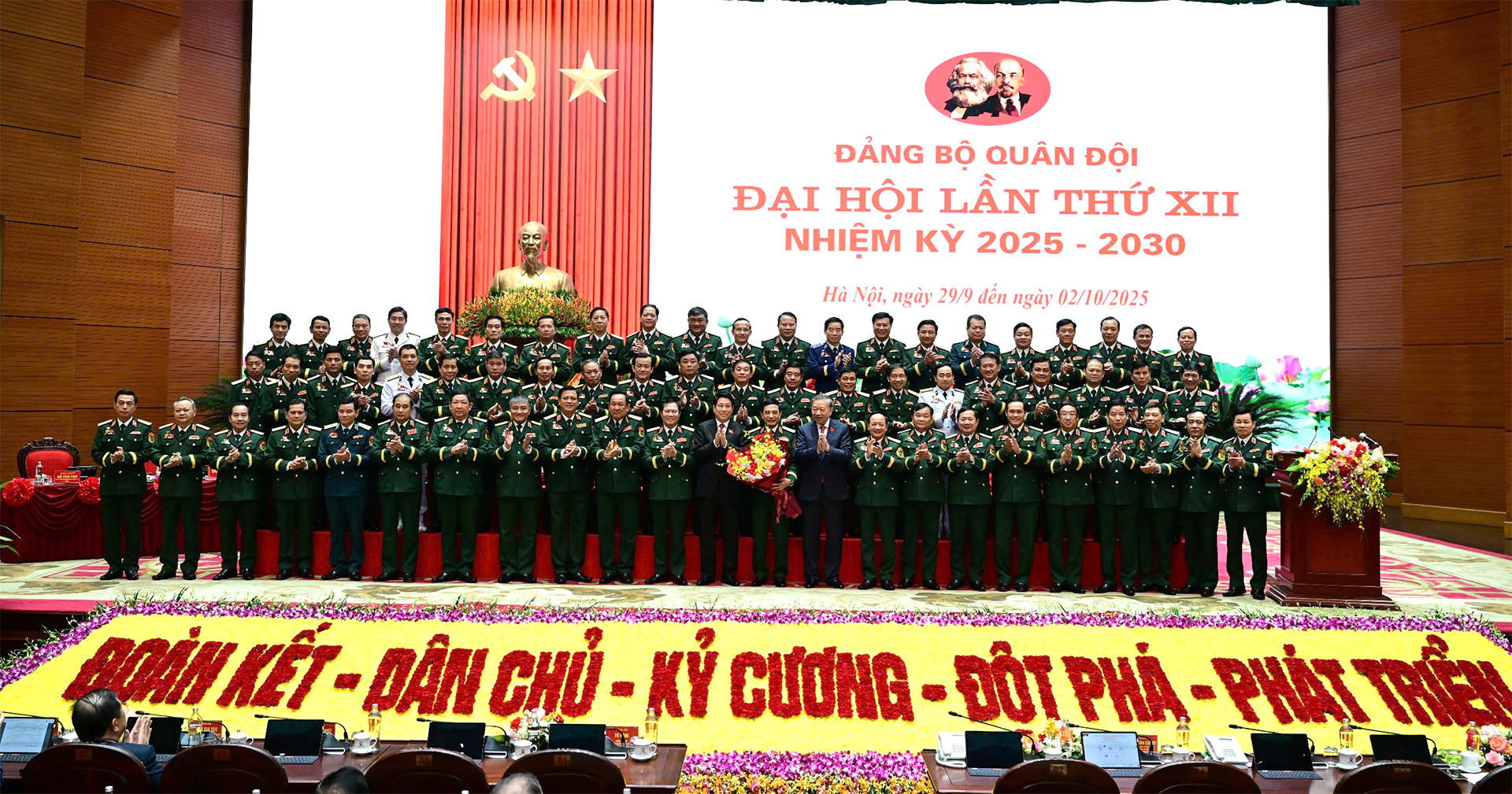 Sáng nay, Tổng Bí thư Tô Lâm và Chủ tịch nước Lương Cường dự phiên bế mạc Đại hội đại biểu Đảng bộ Quân đội lần thứ 12, nhiệm kỳ 2025-2030.