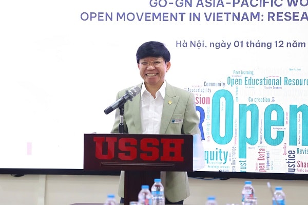 Tại hội thảo, GS-TS Hoàng Anh Tuấn - Hiệu trưởng USSH - nhấn mạnh sứ mệnh "tiên phong trong tri thức và đổi mới xã hội" của nhà trường. Từ năm 2015, USSH đã sớm cổ vũ phong trào tài nguyên giáo dục mở (OER).