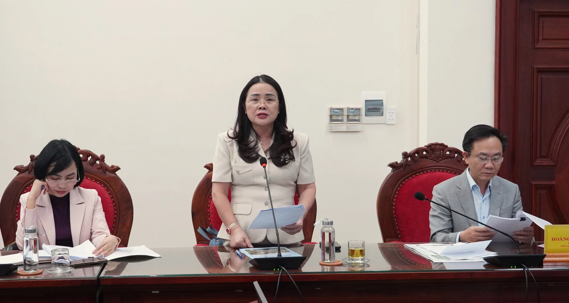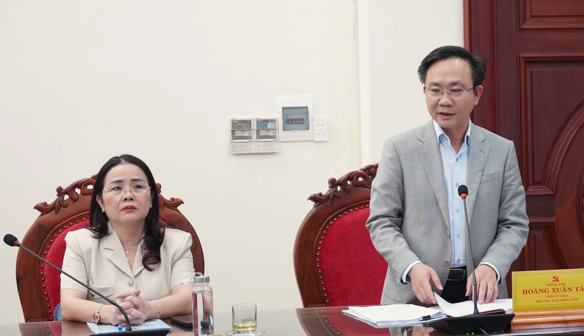 Đồng chí Hoàng Xuân Tân, Phó Chủ tịch UBND tỉnh phát biểu tại buổi làm việc - Ảnh: QV