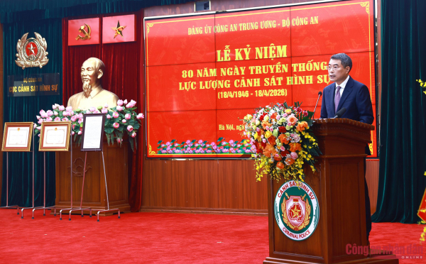 Như Báo CAND đã đưa tin, sáng 18/4, tại Hà Nội, Đảng ủy Công an Trung ương, Bộ Công an trọng thể tổ chức Lễ kỷ niệm 80 năm Ngày truyền thống lực lượng Cảnh sát hình sự (18/4/1946 - 18/4/2026) và trao Huân chương Hồ Chí Minh tặng lực lượng Cảnh sát hình sự; Huân chương chiến công hạng Nhất tặng Cục Cảnh sát hình sự cùng các phần thưởng cao quý của Đảng, Nhà nước tặng các tập thể, cá nhân thuộc lực lượng Cảnh sát hình sự.
