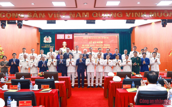 Thủ tướng Lê Minh Hưng chúc mừng, biểu dương những thành tích, kết quả đặc biệt xuất sắc mà lực lượng Cảnh sát hình sự đã đạt được trong chặng đường lịch sử 80 năm qua; biểu dương, ghi nhận và chúc mừng 80 đại biểu điển hình tiêu biểu.