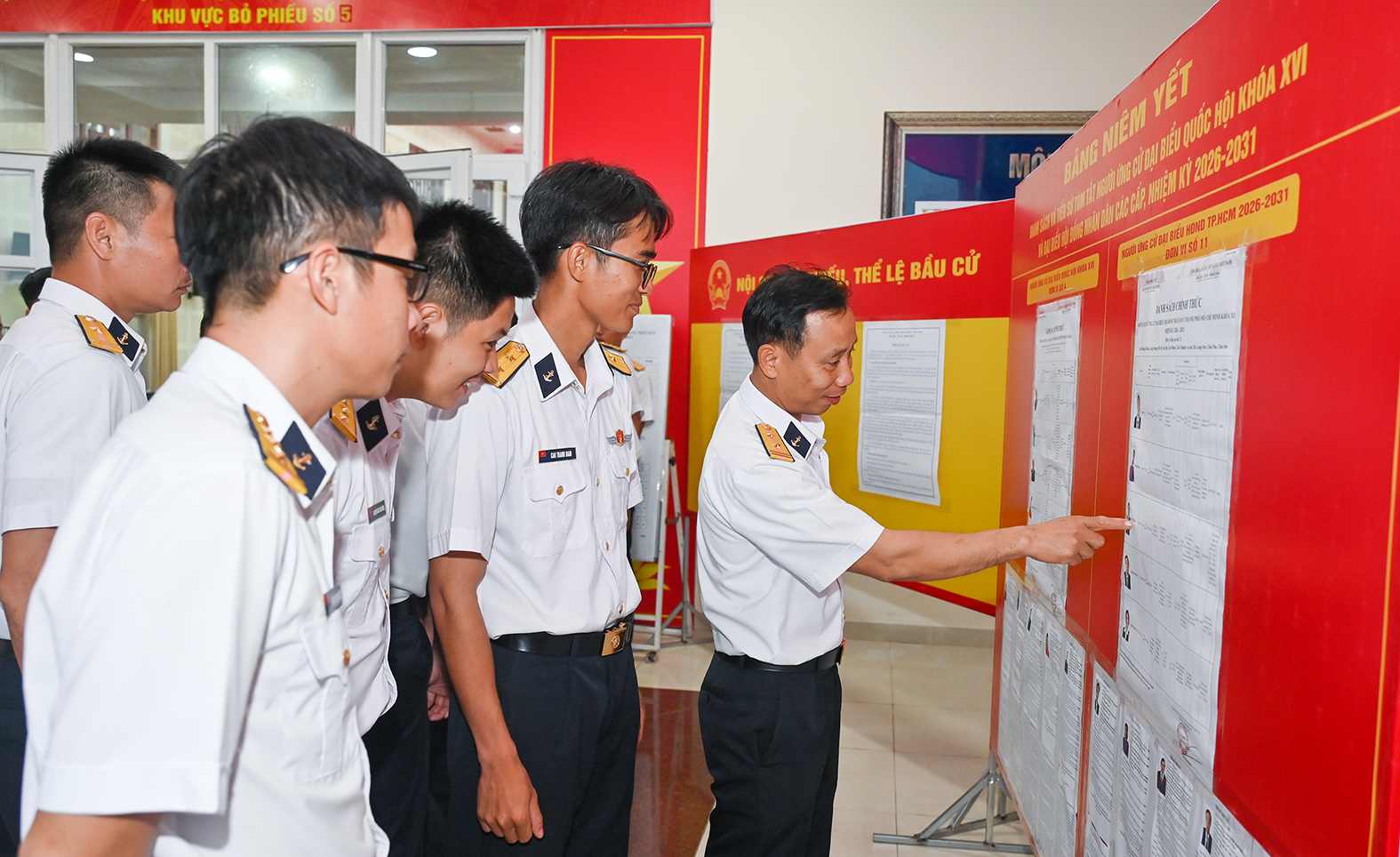 Cử tri thuộc Bộ Tư lệnh Vùng 2 Hải quân tìm hiểu tiểu sử người ứng cử đại biểu Quốc hội khóa XVI và đại biểu Hội đồng nhân dân các cấp nhiệm kỳ 2026-2031