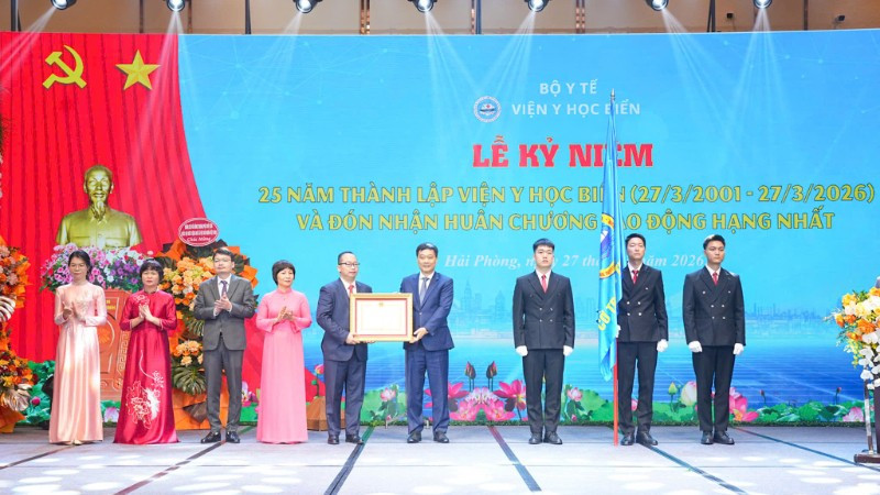 Phó Chủ tịch Quốc hội Vũ Hồng Thanh trao Huân chương Lao động hạng Nhất cho Viện Y học biển.