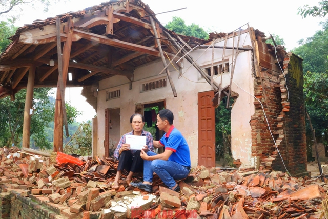 Ngày 20-10, bà Thân Thị Quyên, Chủ tịch UB MTTQ xã Điềm Thụy cho biết ngày 19-10, đại diện Đảng ủy, HĐND, UBND, Ủy ban MTTQ xã Điềm Thụy đã đến thăm, động viên và trao hỗ trợ cho bà Trương Thị Hoạt, xóm Đông, xã Điềm Thụy - người phụ nữ đơn thân có nhà bị sập do ảnh hưởng của bão, lũ vừa qua.