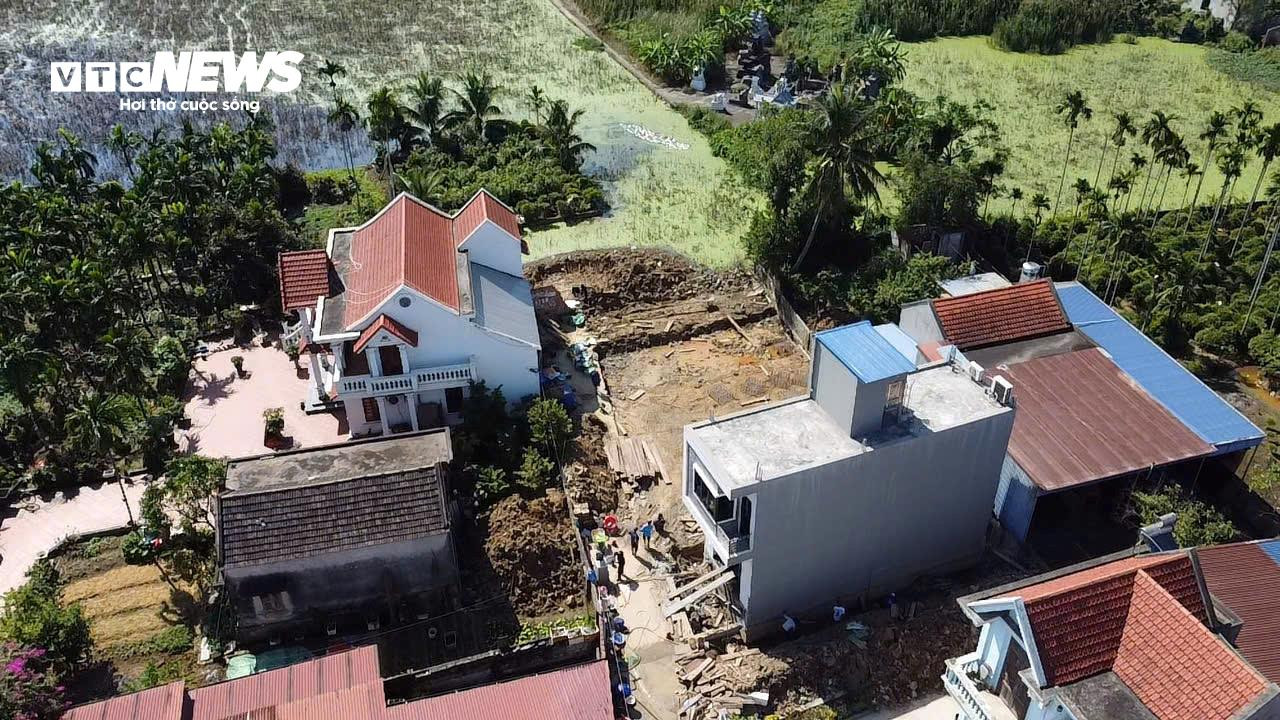 Theo ghi nhận của phóng viên tại hiện trường, khoảng 6-7 công nhân trong đội thực hiện việc di dời vẫn đang rút nước ở phần móng quanh ngôi nhà hai tầng của gia đình ông Hữu để tiếp tục thi công. Trên phần đất của gia đình ông Hữu ở cách đó không xa cũng đã cơ bản hoàn thiện phần móng cọc, sẵn sàng cho việc ghép nối căn nhà.