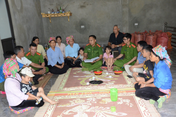 Cán bộ, chiến sĩ Công an xã Mường Kim, tỉnh Lai Châu tuyên truyền đến người dân nâng cao ý thức trong phòng, chống tội phạm ma túy