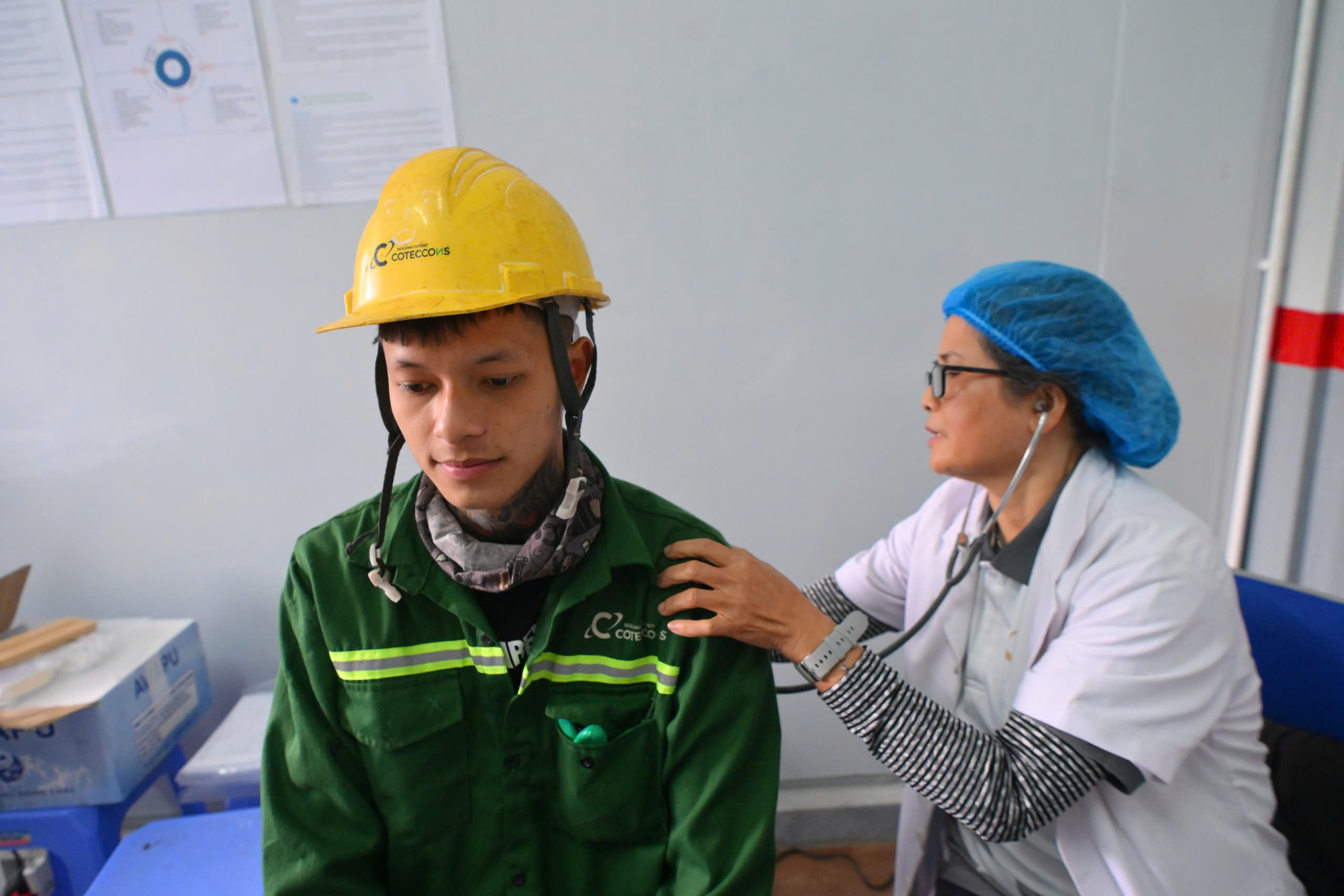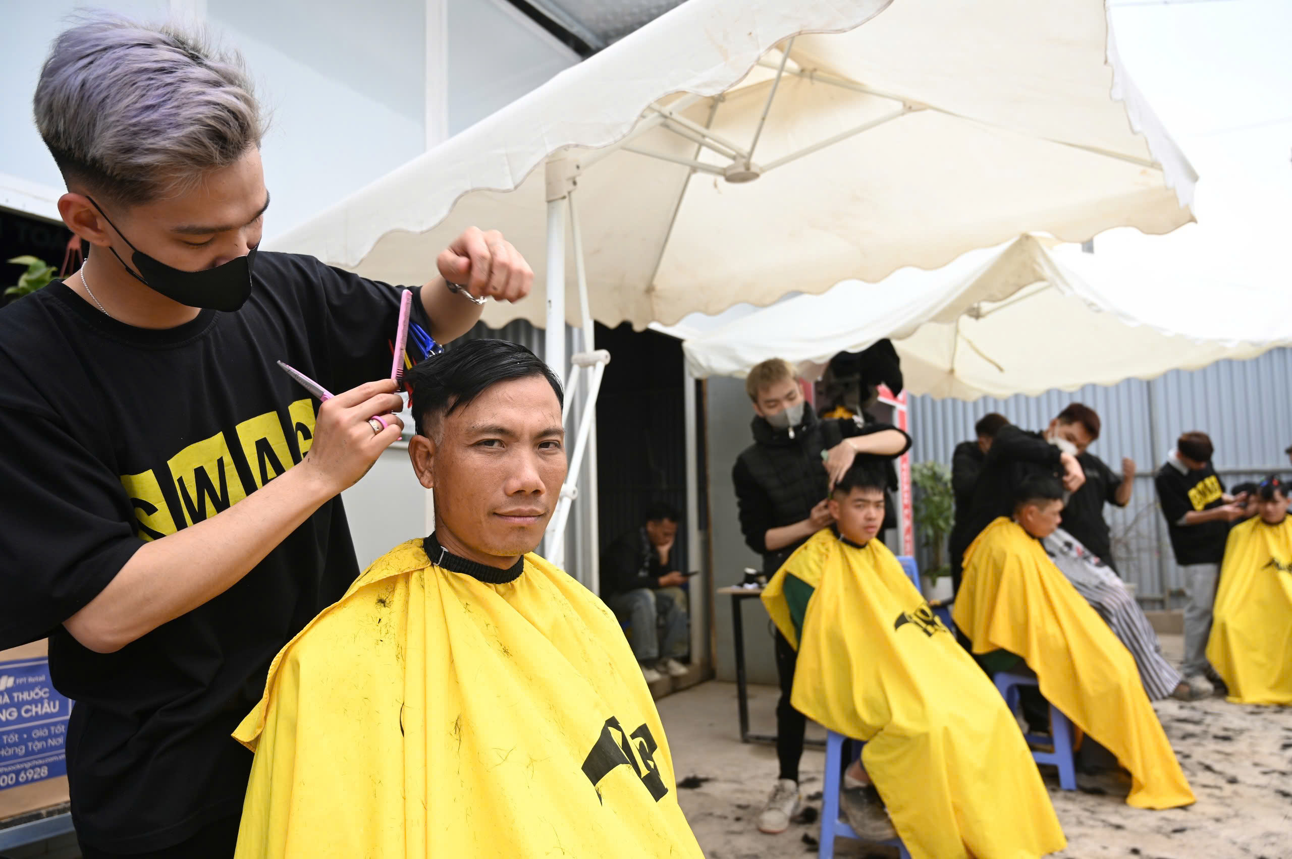 Công nhân xây dựng nhận quà Tết và tham gia cắt tóc, khám bệnh miễn phí