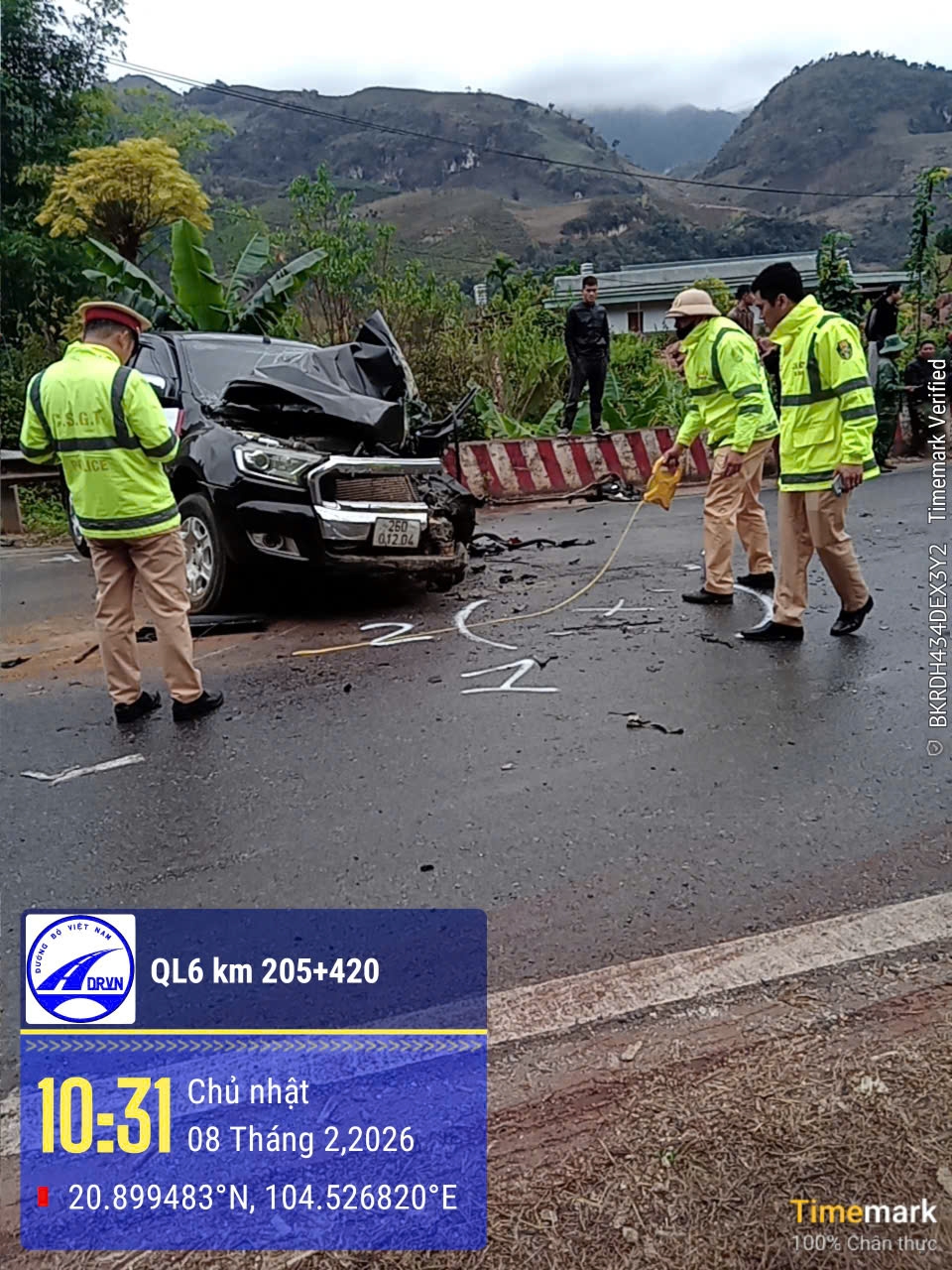 Thông tin ban đầu được biết, vào khoảng 9h10 ngày 8/2, tại Km 205+420 QL.6 đoạn qua phường Mộc Châu, tỉnh Sơn La, xe ô tô tải BKS 29H-81xxx lưu thông theo hướng Hà Nội – Sơn La, khi đến địa điểm trên đã xảy ra va chạm với xe bán tải BKS 26D-012xxx lưu thông theo chiều ngược lại.