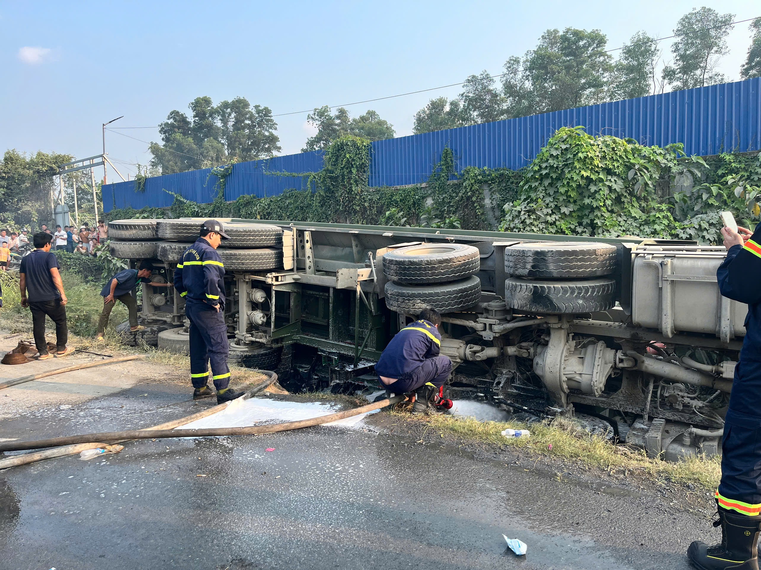 Tại hiện trường, vệt phanh của xe ben kéo dài khoảng 50m. Người dân cùng tài xế xe ben nỗ lực cứu nạn nhưng không thể tiếp cận nạn nhân, buộc phải báo lực lượng chức năng.