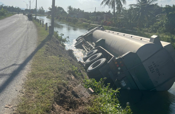 Chiếc xe tải này bất ngờ lao xuống lòng kênh thủy nông chính Bắc trong hệ thống thủy nông Đồng Cam. Rất may là sau khi xảy ra tai nạn, tài xế đã kịp thoát ra ngoài, trong bồn xe không có dầu. Thông tin ban đầu cho biết, nguyên nhân xảy ra tai nạn là do tài xế… ngủ gật.