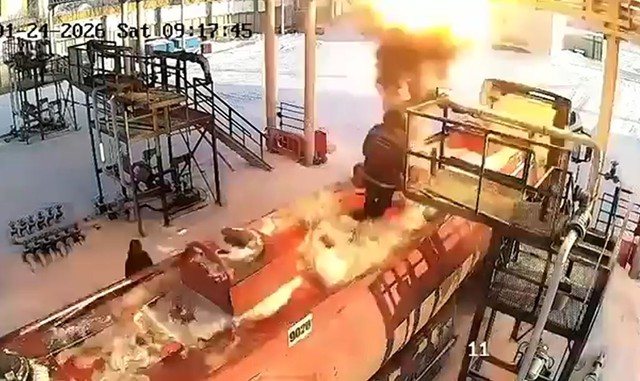 Vào ngày 24/1, tại Zhanaauyl, Pavlodar, Kazakhstan, camera giám sát đã ghi lại vụ nổ liên quan đến một xe bồn chở nhiên liệu tại trạm xăng Pegas.