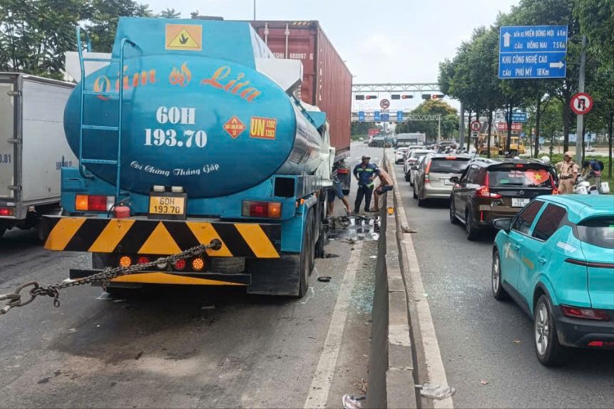 Theo thông tin ban đầu, hơn 11 giờ trưa cùng ngày, xe container đang dừng chờ đèn tín hiệu giao thông trên tuyến đường này thì bất ngờ bị xe bồn lưu thông cùng chiều từ phía sau tông thẳng vào đuôi.