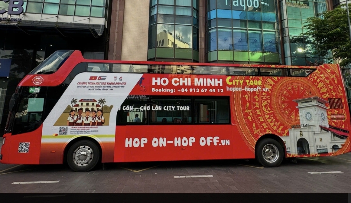 Thông điệp chương trình “Mặt trời không biên giới” trên xe buýt 2 tầng Hop On Hop Off