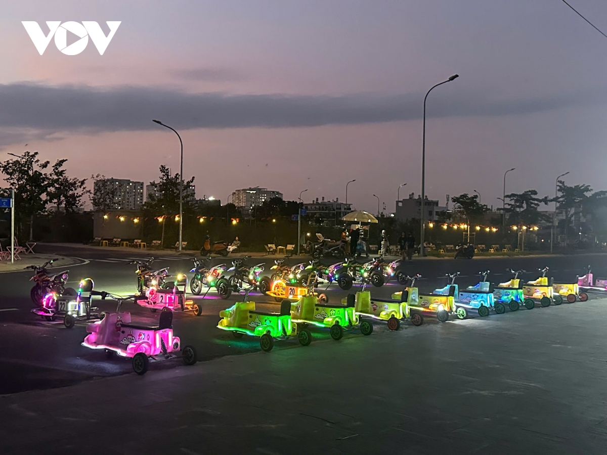 Trong vai khách thuê, phóng viên tiếp cận nhóm thanh niên điều hành bãi xe và được báo giá: xe điện sử dụng ắc-quy, hệ thống lái ba bánh, dẫn động bánh trước, trang trí đèn LED sặc sỡ loại xe được trẻ nhỏ ưa thích có giá 40.000 đồng/giờ. Còn loại xe mô tô chạy xăng, dáng giống xe đua, dẫn động bánh sau, pô lớn, công suất cao, thường được gọi là “cào cào mini”, có thể chạy tới 60km/h, chở được hai người, giá thuê 60.000 đồng/giờ. Theo quan sát, riêng bãi phía Bắc có khoảng 10 xe cào cào mini và gần 20 xe đạp đụng chờ khách.