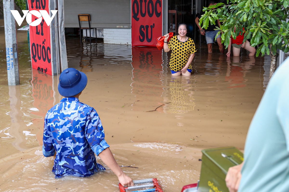 Từ sáng 30/9 đến hôm nay (1/10), hơn 30 cán bộ, chiến sĩ Cảnh sát biển Việt Nam đã được huy động về khu vực ngập nặng giúp người dân bị ảnh hưởng bởi mưa, ngập
