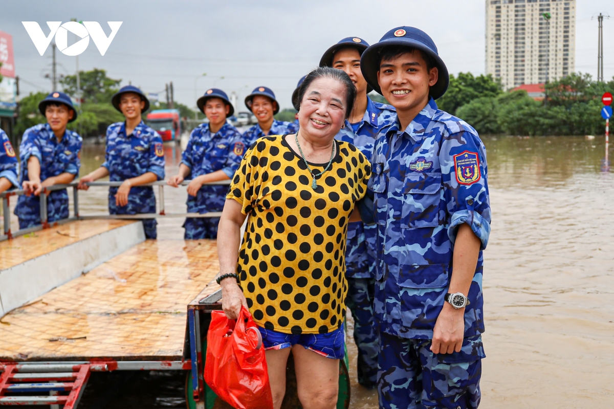 Bà Nguyễn Thị Liên (75 tuổi, nhà ở khu vực cầu Ngà) vừa được các chiến sĩ đưa qua dòng nước ngập chia sẻ: “Một mình tôi chắc chắn không thể dắt xe nổi. Các chú bộ đội trẻ, mưa táp vào mặt mà vẫn cười, vẫn động viên chúng tôi. Thật sự tôi thấy an tâm và biết ơn vô cùng”.