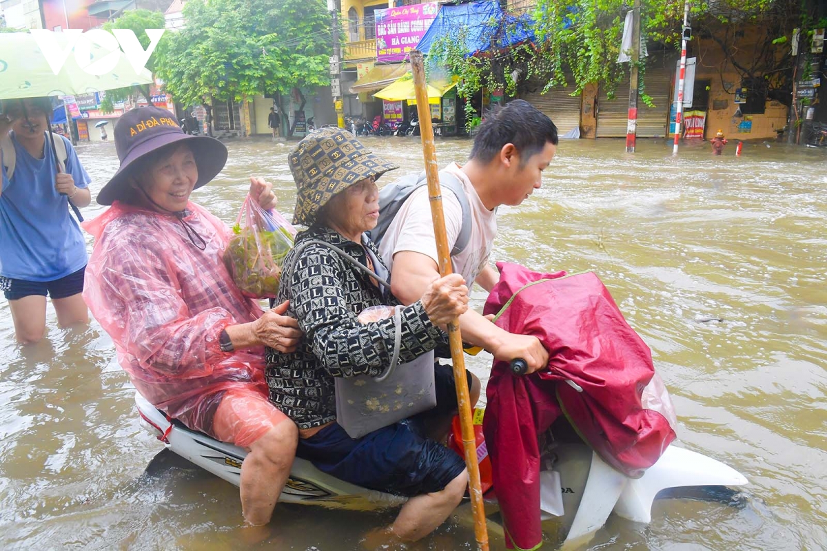 ...một nam thanh niên (xin được giấu tên) không ngại khó mời hai cụ lên xe để đưa qua khu vực ngập sâu.