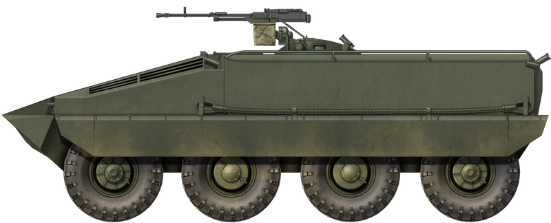 Xe do kíp 2 - 3 người vận hành, mang theo 8 binh sĩ trong khoang sau. Cách bố trí này gợi ý vai trò chở quân có giáp bảo vệ mạnh, tương thích với cấu hình hỏa lực và giáp của phương tiện.