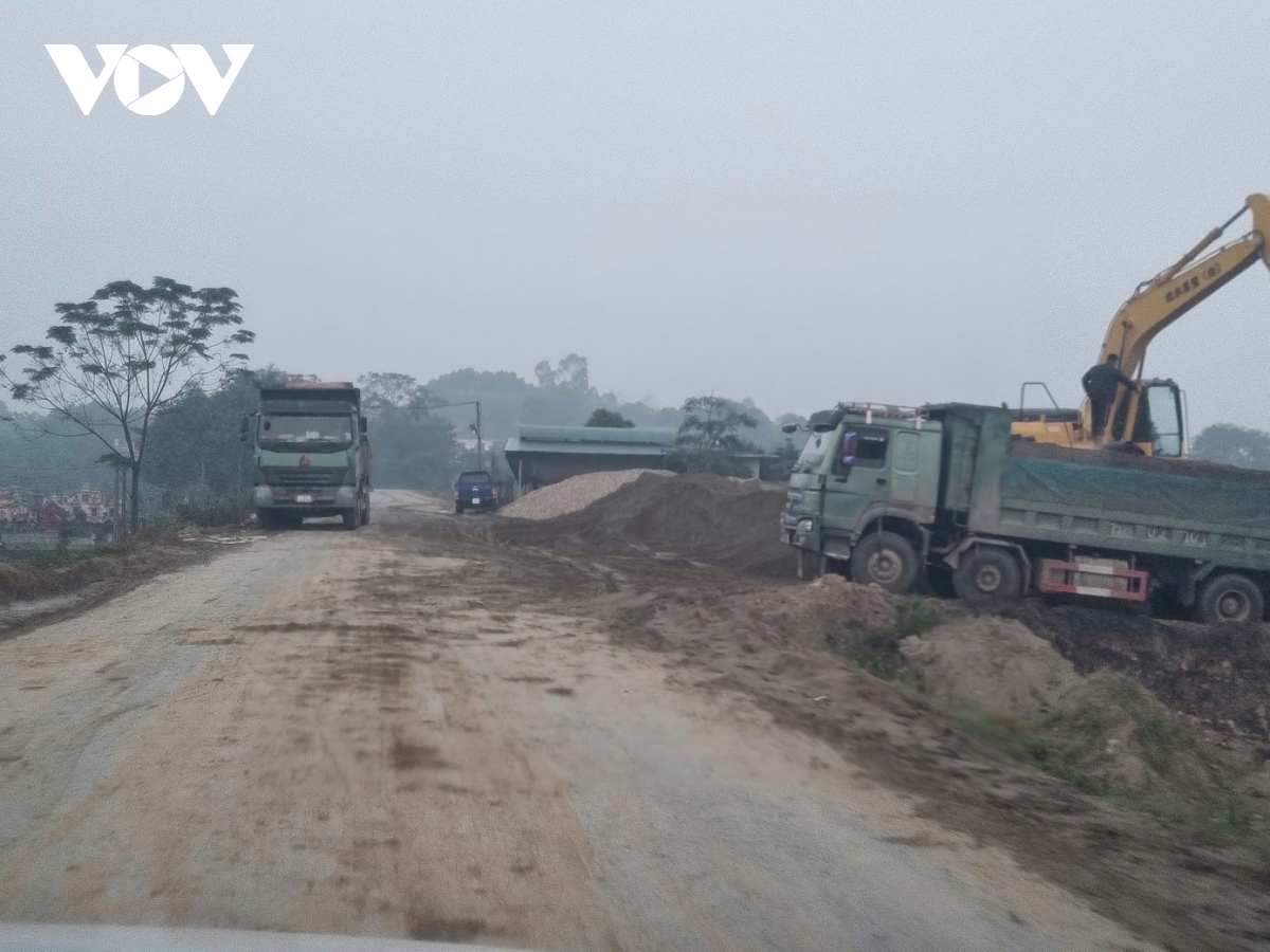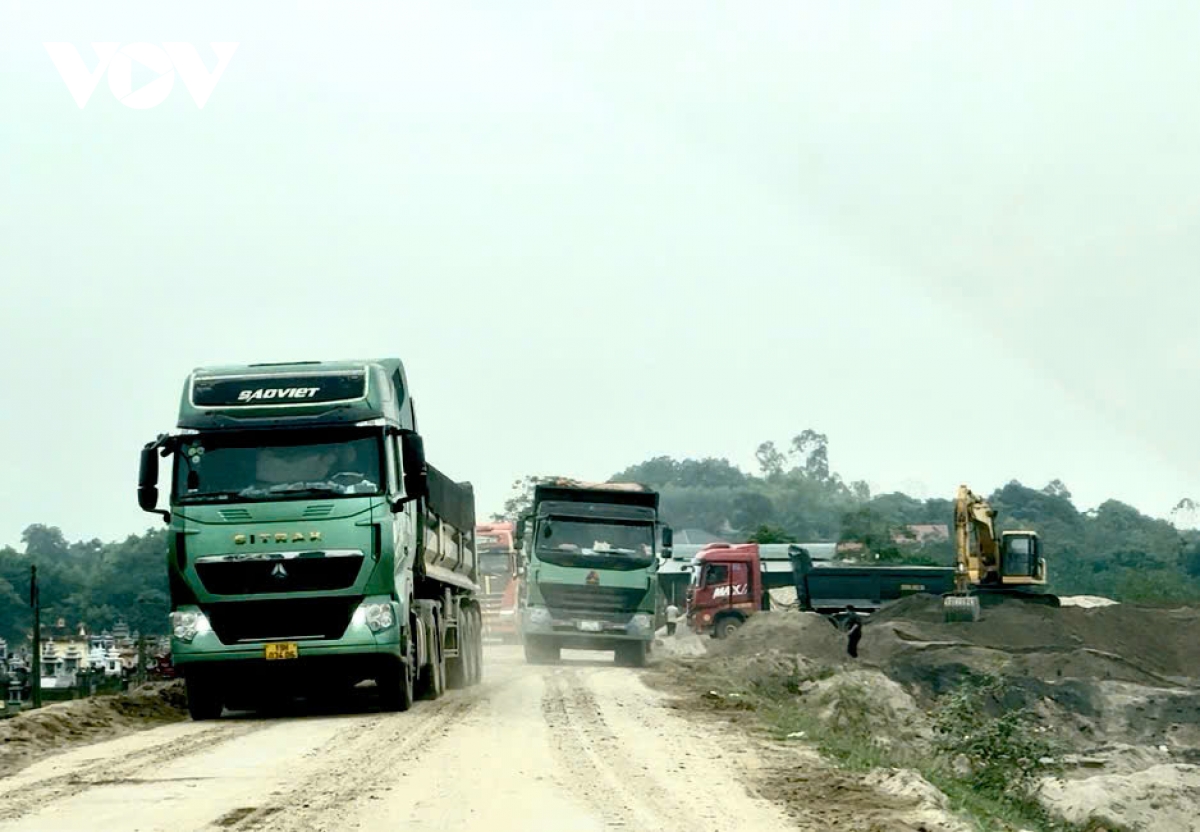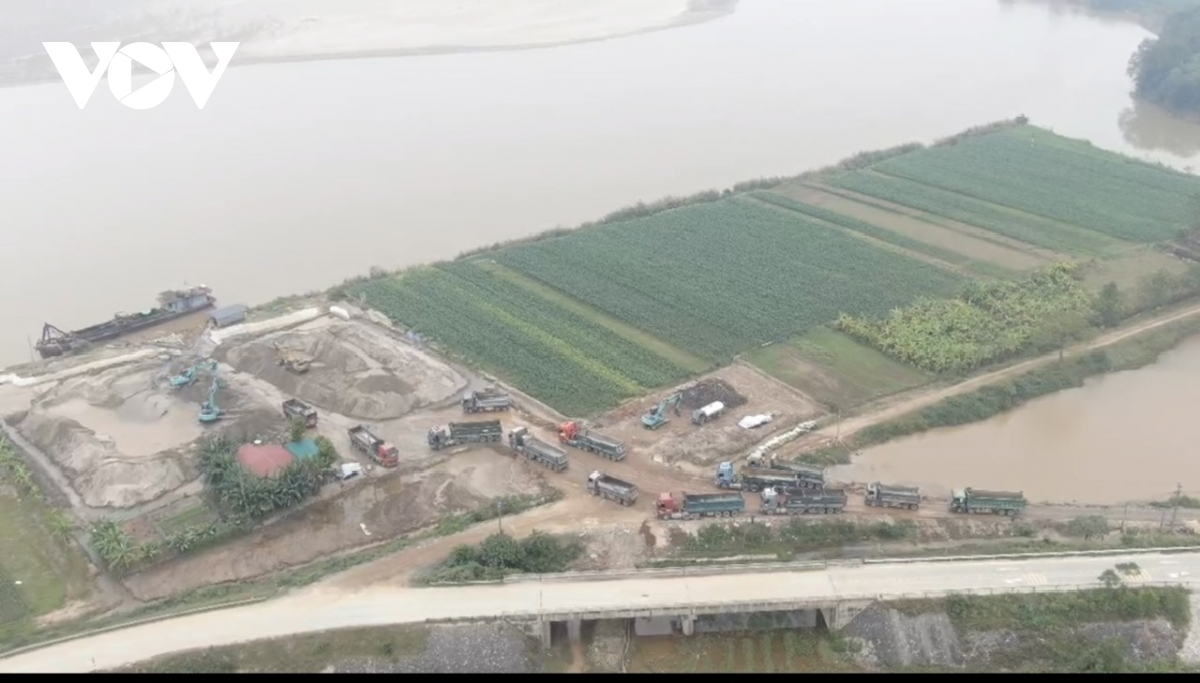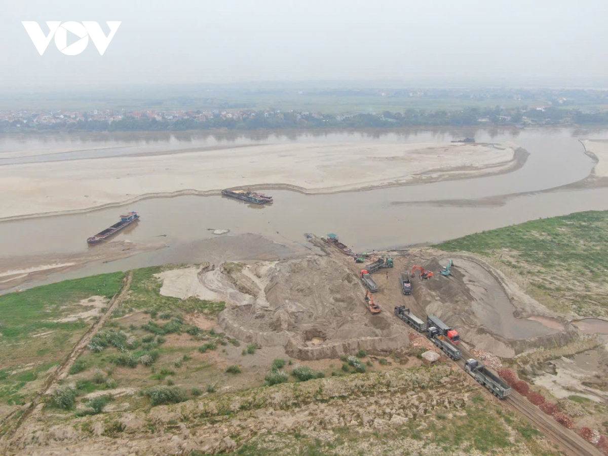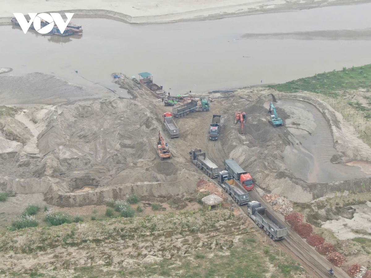 Ghi nhận của phóng viên VOV.VN từ đầu tháng 12 đến nay, tại các bến bãi này, rất nhiều xe đến “ăn” cát từ rất sớm. Đa số là các xe 3 chân, HOWO lấy cát từ các bến rồi chạy ra Quốc lộ 32C rồi ra đường tỉnh 313C, đường liên vùng và chạy đi các công trình.