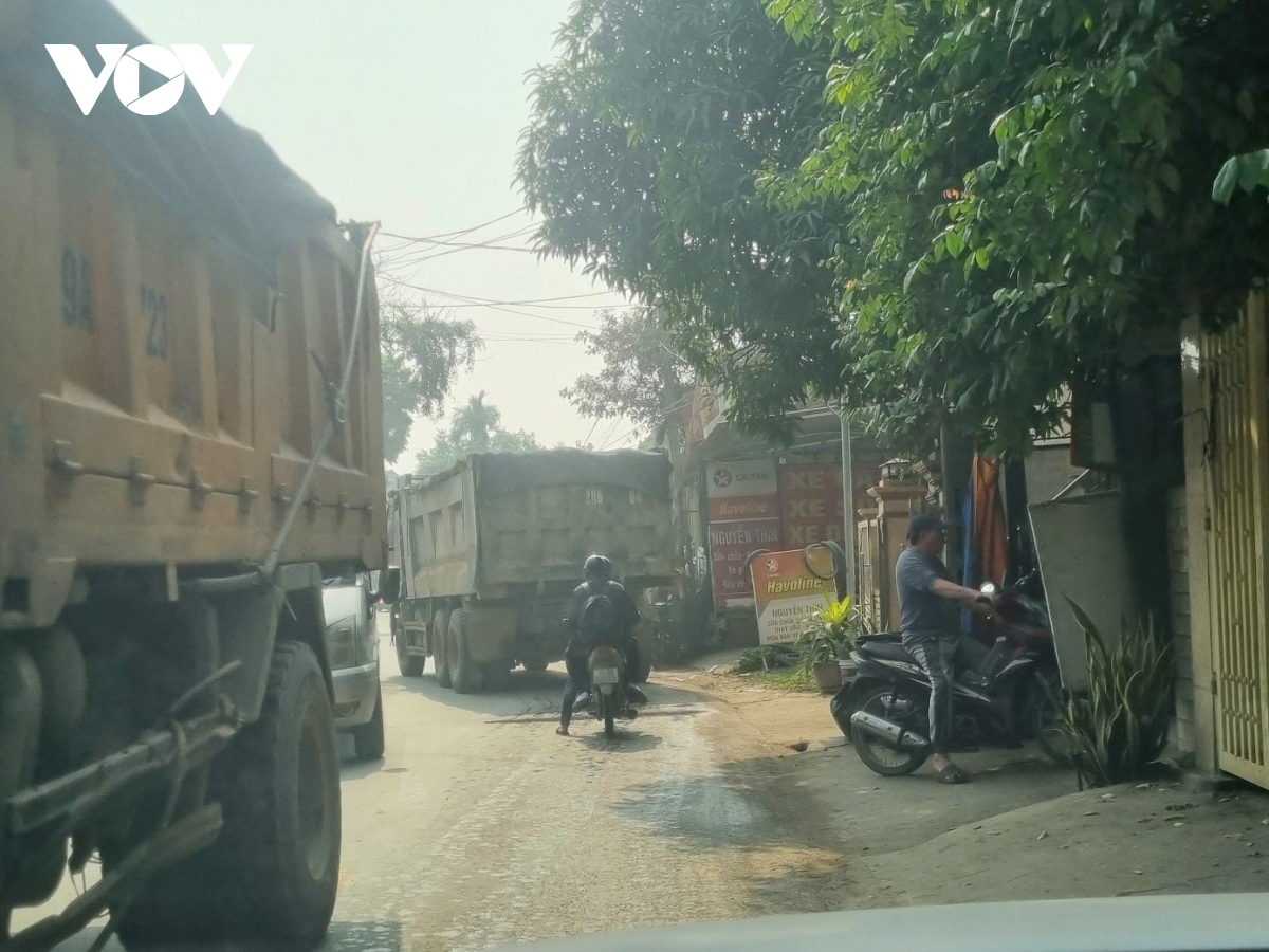 Những “binh đoàn” xe chạy rầm rầm khiến cát rơi vãi khắp nơi gây ô nhiễm môi trường, đồng thời tiềm ẩn nguy cơ tai nạn giao thông, nhất là khu vực qua cổng trường học, khu chợ, nơi đông dân cư.