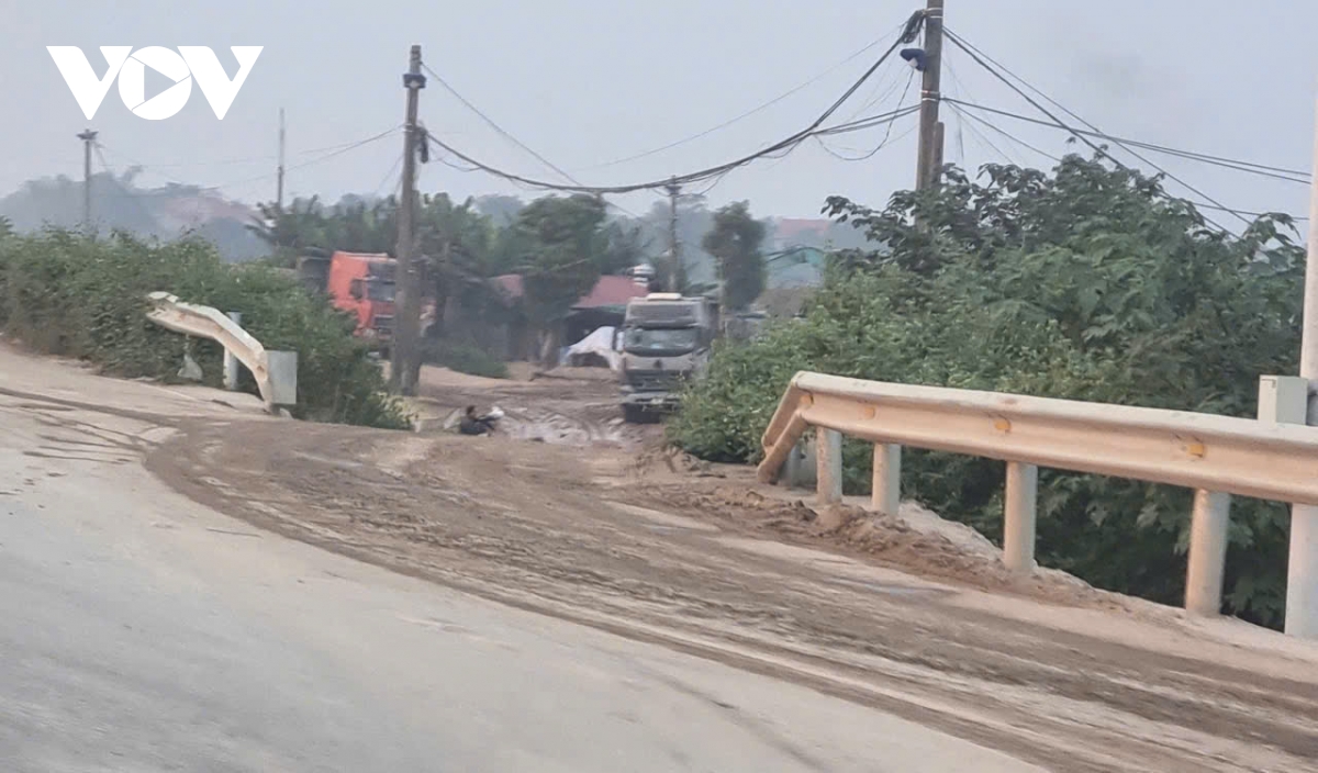 Đoàn xe vừa “ăn” cát từ bãi cát gần cầu Tứ Mỹ chạy ra Quốc lộ 32C, xe đi đến đâu cát, nước, bụi bẩn rơi vãi khắp nơi khiến cung đường này trở nên ô nhiễm, tiềm ẩn nguy cơ tai nạn giao thông.