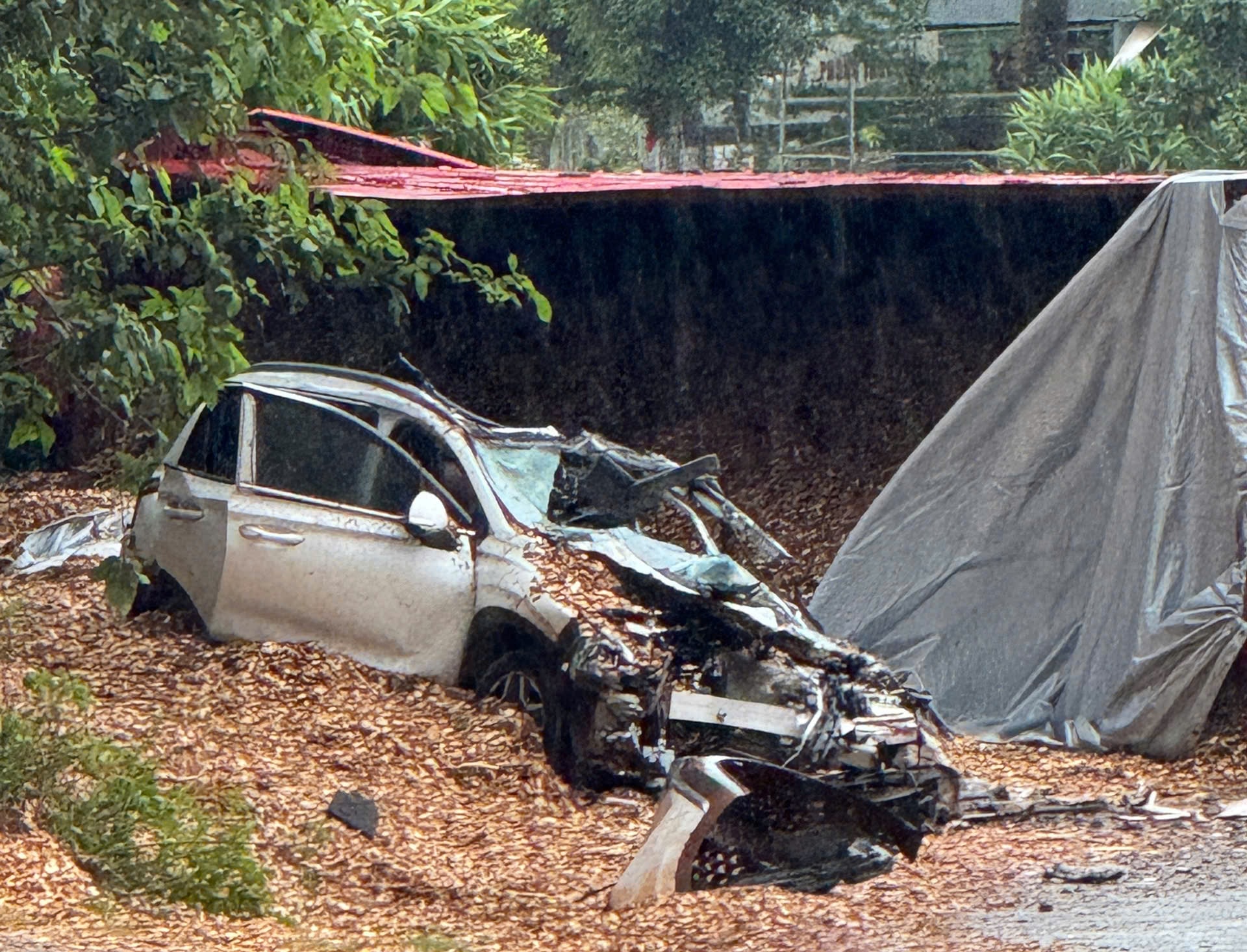 Hiện trường vụ TNGT khiến chiếc xe con bị bẹp dúm