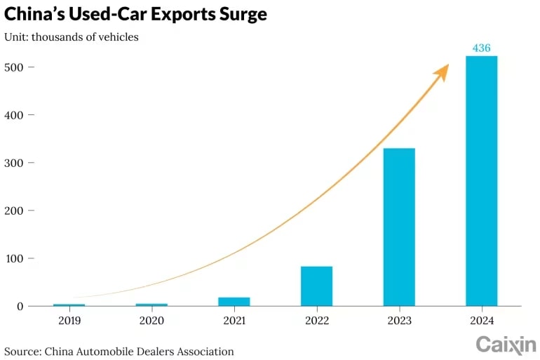Điều này cho phép các nhà xuất khẩu bán những chiếc xe gần như mới với mức chiết khấu hấp dẫn tại thị trường nước ngoài mà vẫn thu được lợi nhuận. Hiện tượng này phổ biến đến mức những người trong ngành ước tính khoảng 80% lượng xe cũ xuất khẩu của Trung Quốc thuộc loại này. Kim ngạch xuất khẩu xe cũ của Trung Quốc đã tăng vọt từ khoảng 15.000 xe vào năm 2021 lên gần 440.000 xe vào năm 2024, và dự kiến sẽ vượt 500.000 xe vào năm 2025.