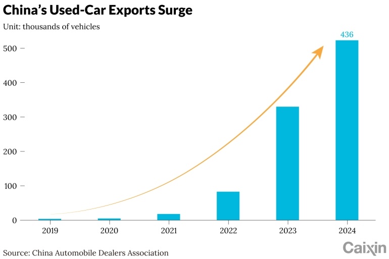 Chỉ trong vài năm ngắn, lượng xe xuất khẩu của Trung Quốc tăng vọt lên gần 440.000 chiếc vào năm 2024, so với chỉ 15.000 xe vào năm 2021. Hơn 80% số lượng xe được ghi nhận là "xe cũ".