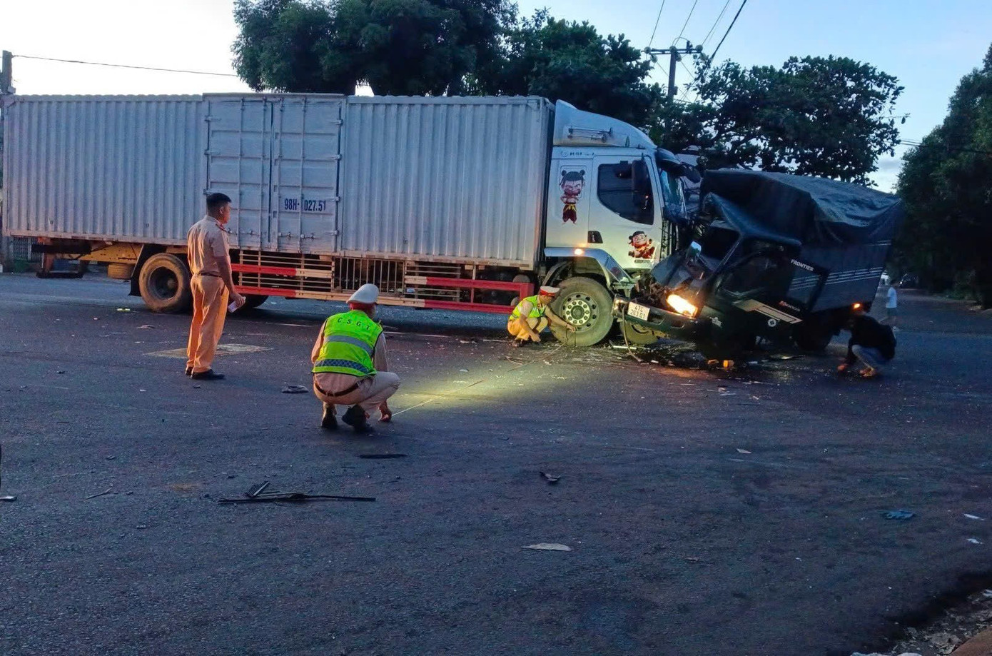 Cú va chạm khiến xe của anh Lâm tiếp tục đâm vào xe tải biển số 98H-027.51 do anh Nguyễn Văn Linh (SN 1997, trú tỉnh Vĩnh Phúc (cũ) điều khiển, chạy hướng ngược lại.