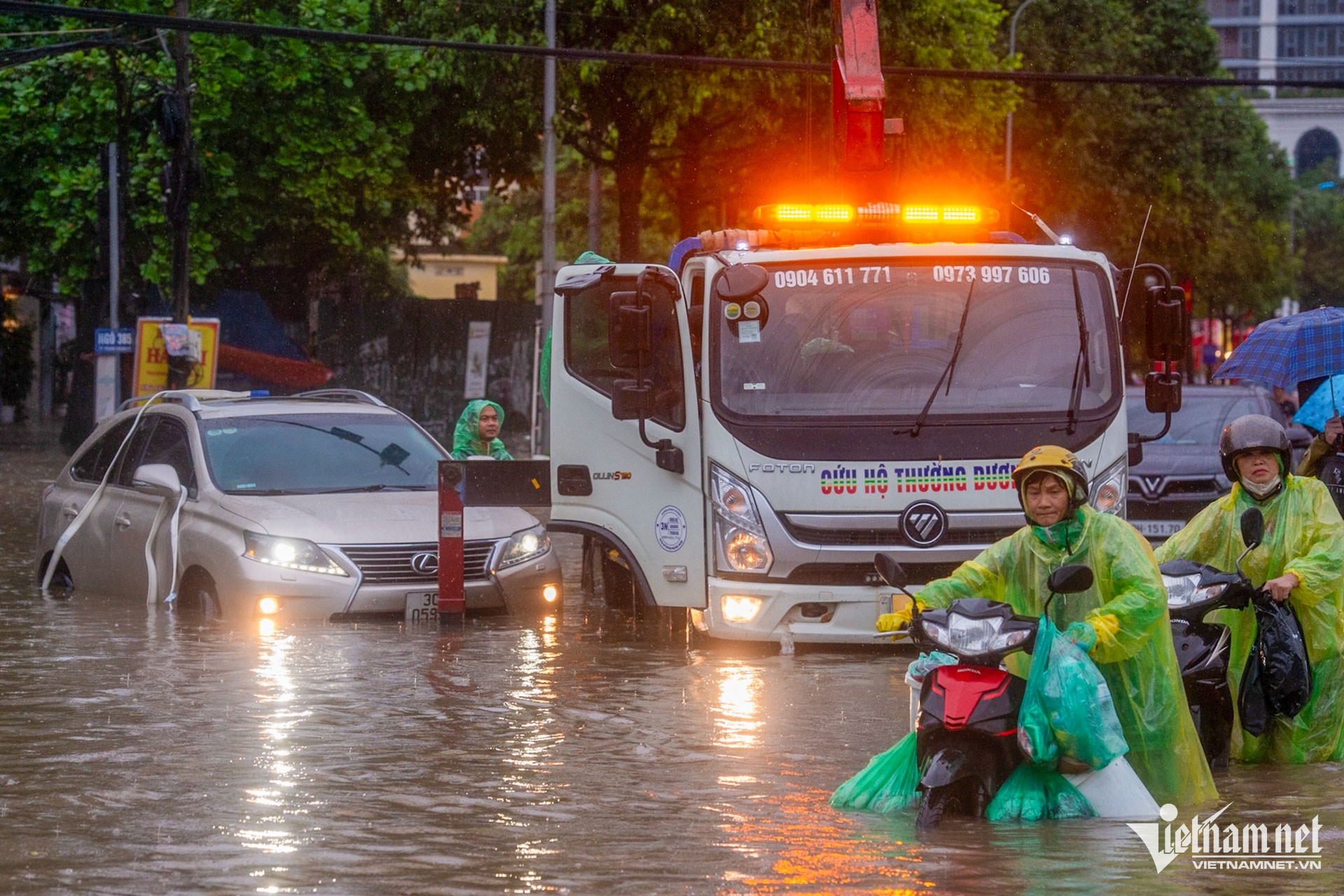 Trao đổi với VietNamNet, ông Bùi Xuân Duyên, Giám đốc Trung tâm cứu hộ 116 cho biết: "Từ rạng sáng, hàng trăm cuộc gọi cầu cứu đổ về cùng lúc. Các tuyến đường như Đại lộ Thăng Long, Nguyễn Trãi, Tố Hữu, Lê Văn Lương, Phạm Hùng hay khu vực Mỹ Đình đều ngập nặng, có nơi sâu gần một mét. Xe cứu hộ dù gầm cao cũng phải di chuyển chậm chạp."