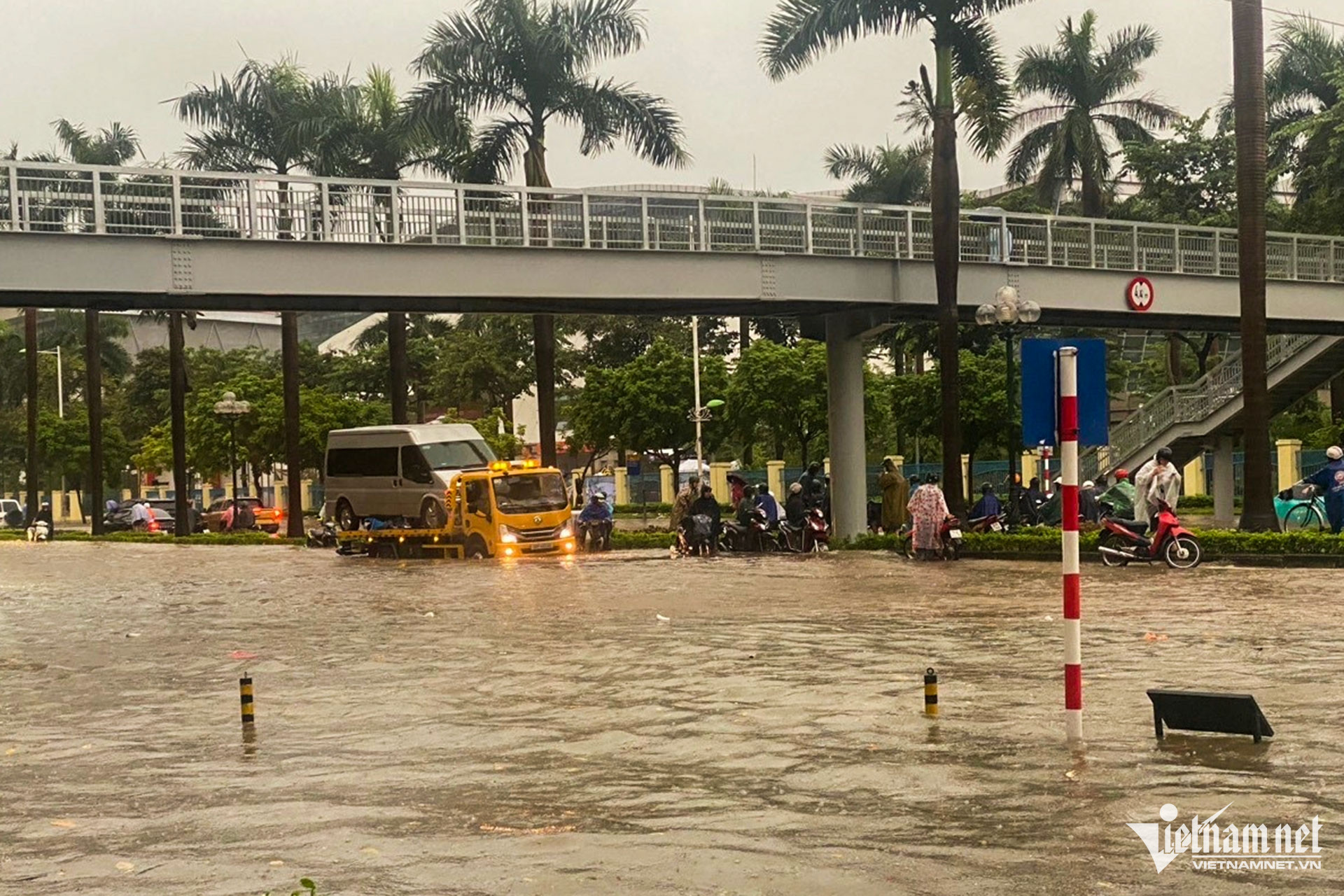 Hiện tại, dù trời đã ngớt mưa, nhiều khu vực trung tâm và các tuyến đường huyết mạch vẫn chìm trong biển nước, khiến hàng trăm phương tiện bất động, chờ “giải cứu”.