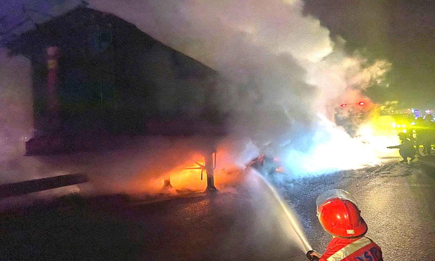 Sau nhiều phút khẩn trương chữa cháy, đám lửa đã được khống chế hoàn toàn. Tuy không gây thiệt hại về người, song thùng xe cùng số hàng hóa chở theo đã bị hư hỏng nặng.