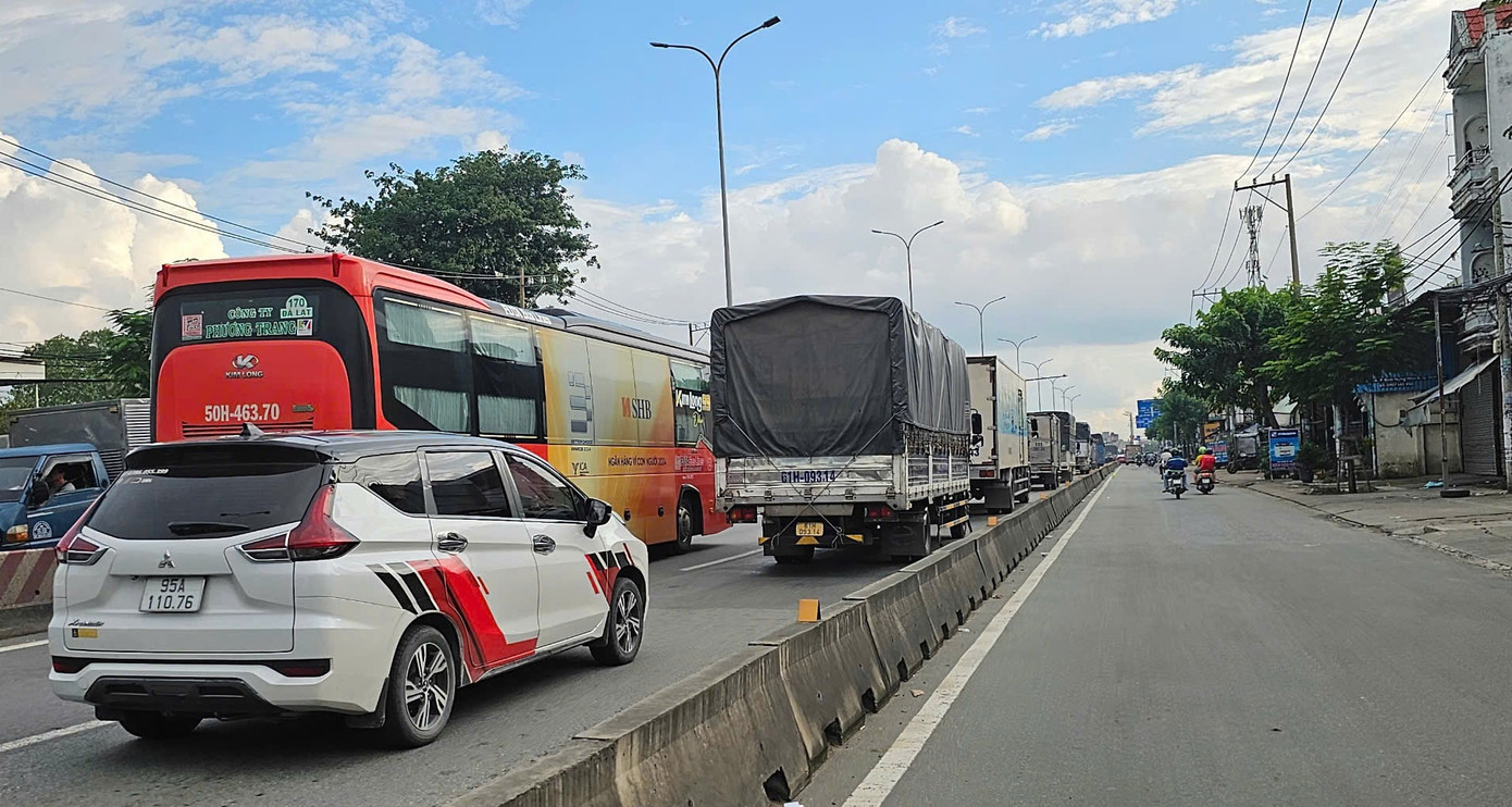 Làn đường ô tô kẹt cứng hàng dài sau vụ tai nạn. Ảnh H.C